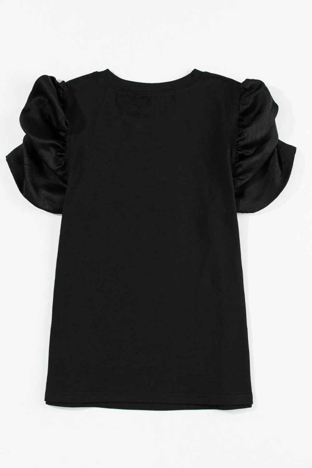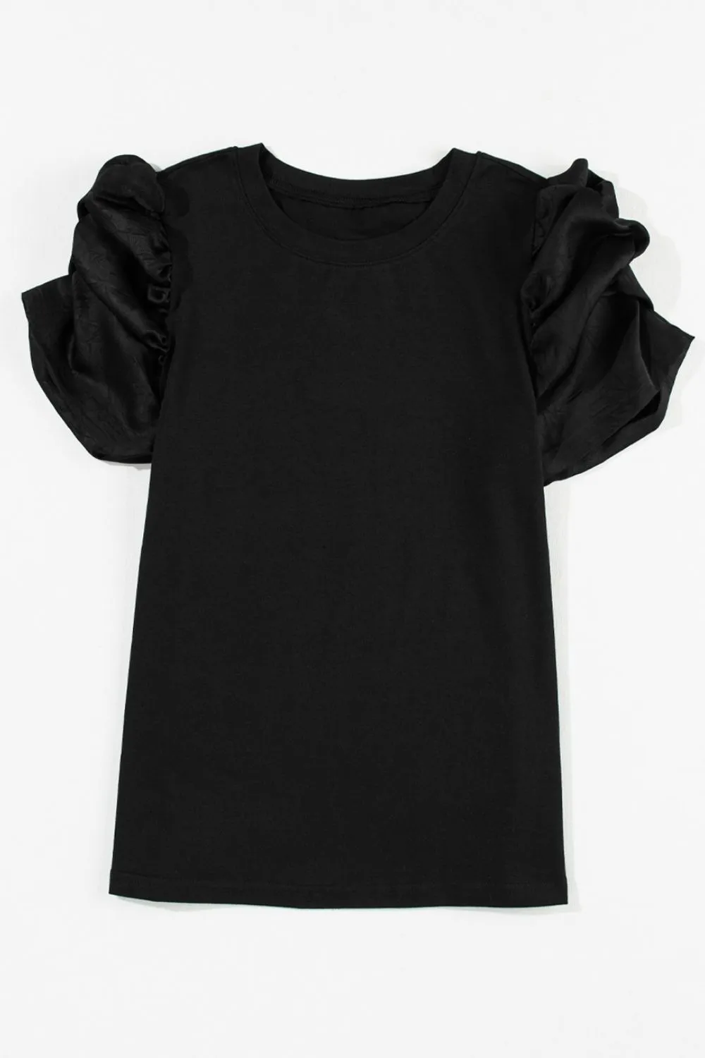 Ruched Puff Sleeve Crew Neck T-Shirt