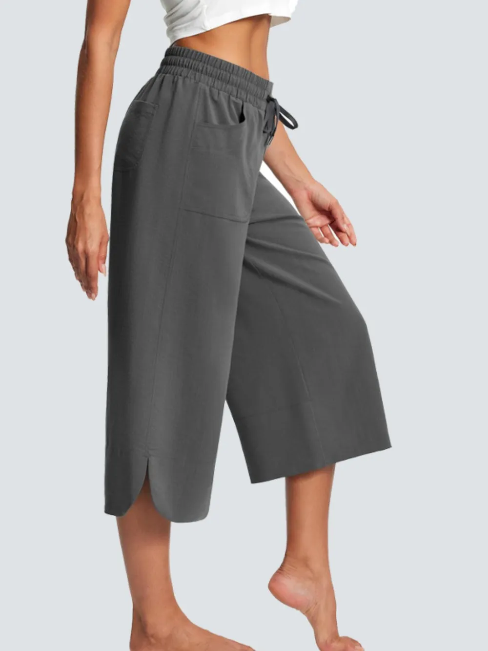Full Size Drawstring Wide Leg Capris Pants Plus Size