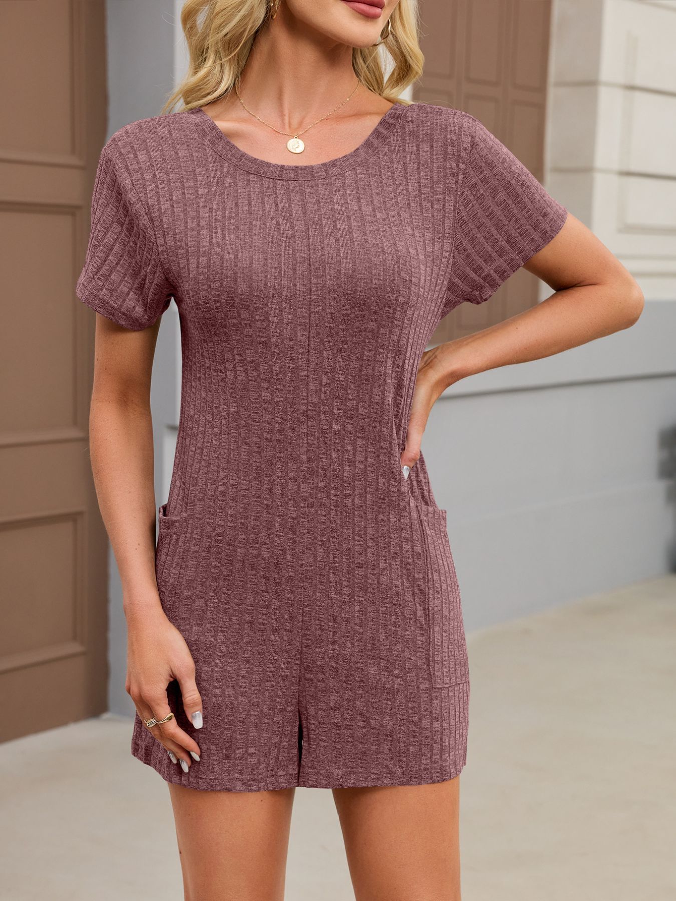 Casual Ribbed Knit V-Neck Romper