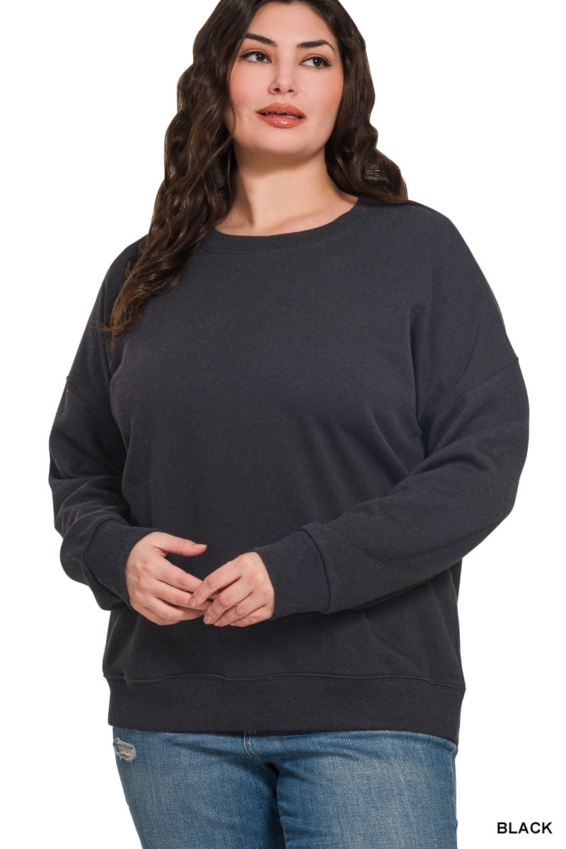 Zenana Full Size Fleece Drop Shoulder Sweatshirt Plus Size