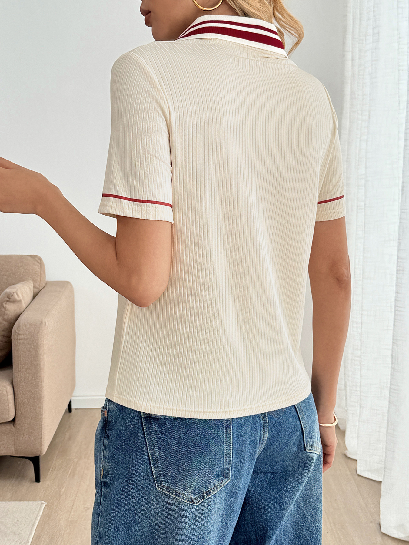 Striped Trim Short Sleeve Top