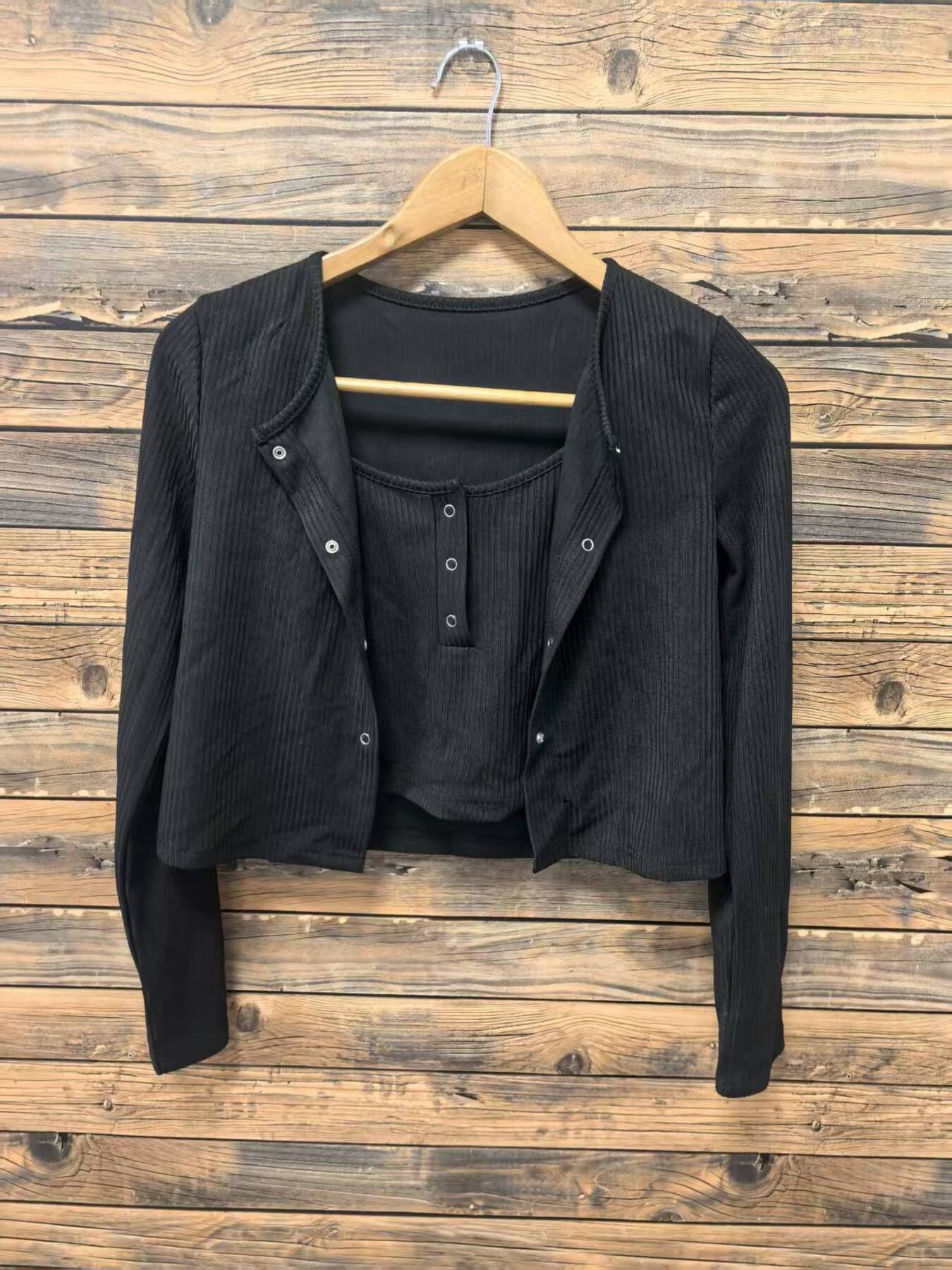 Ribbed Knit Cardigan & Tank Top Set