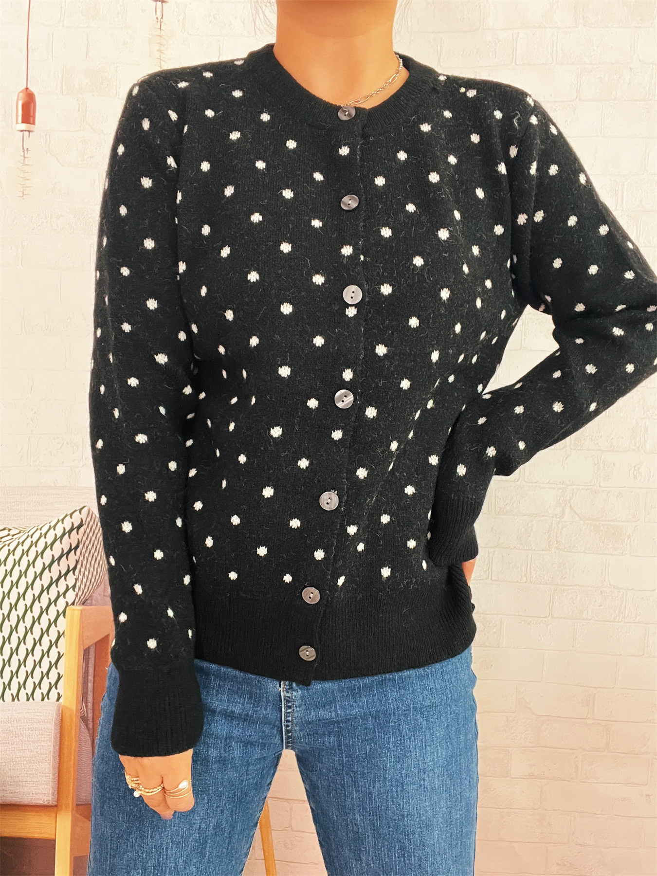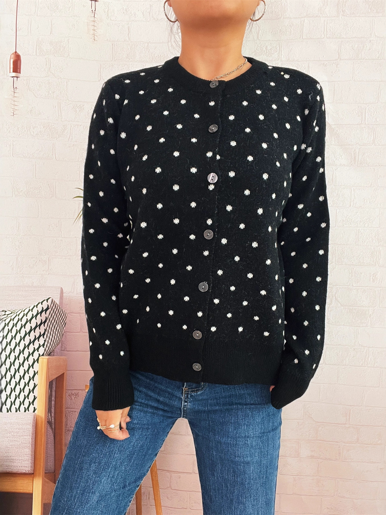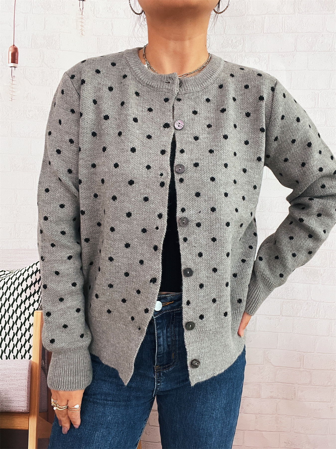Polka Dot Button-Up Cardigan