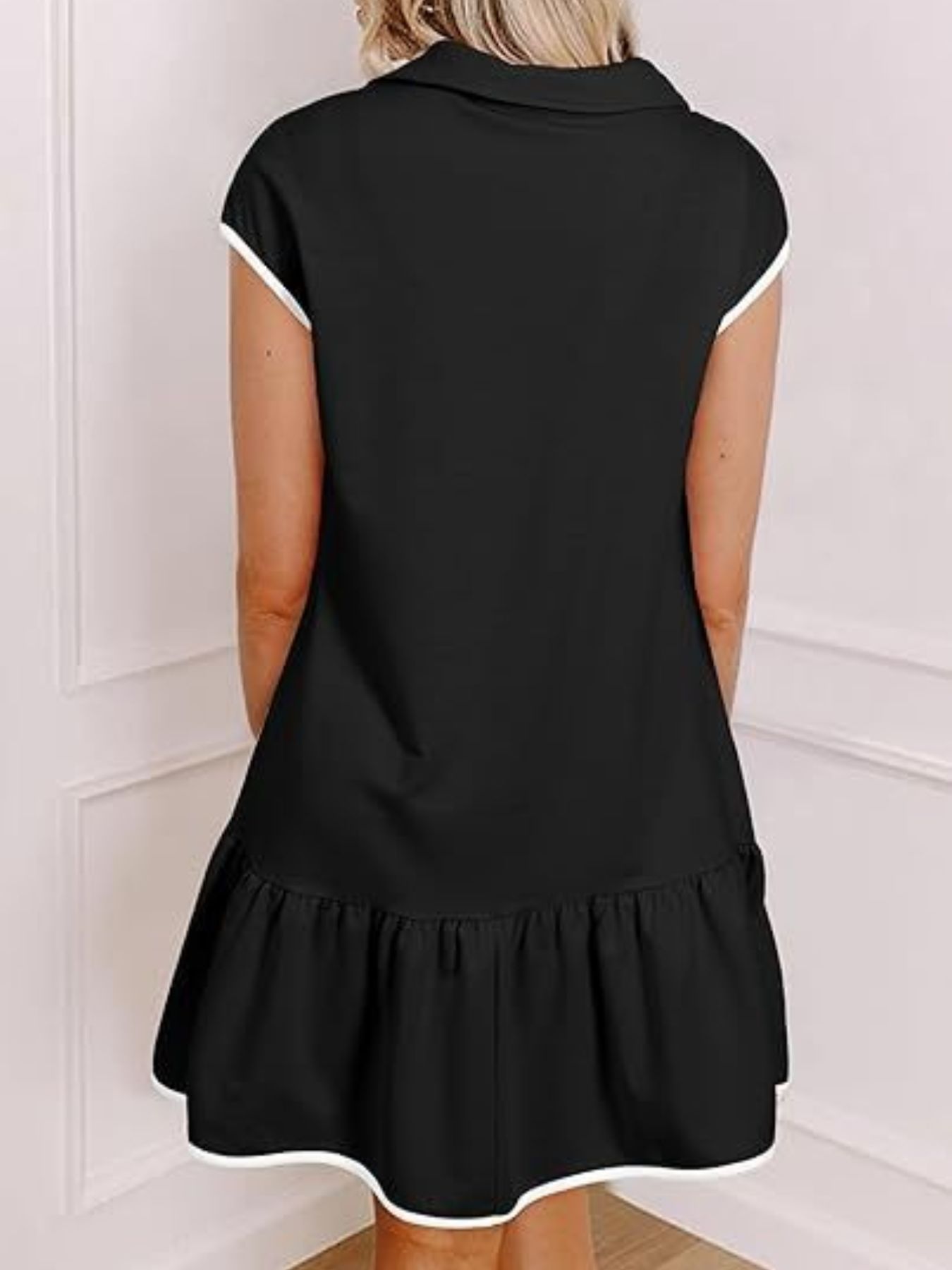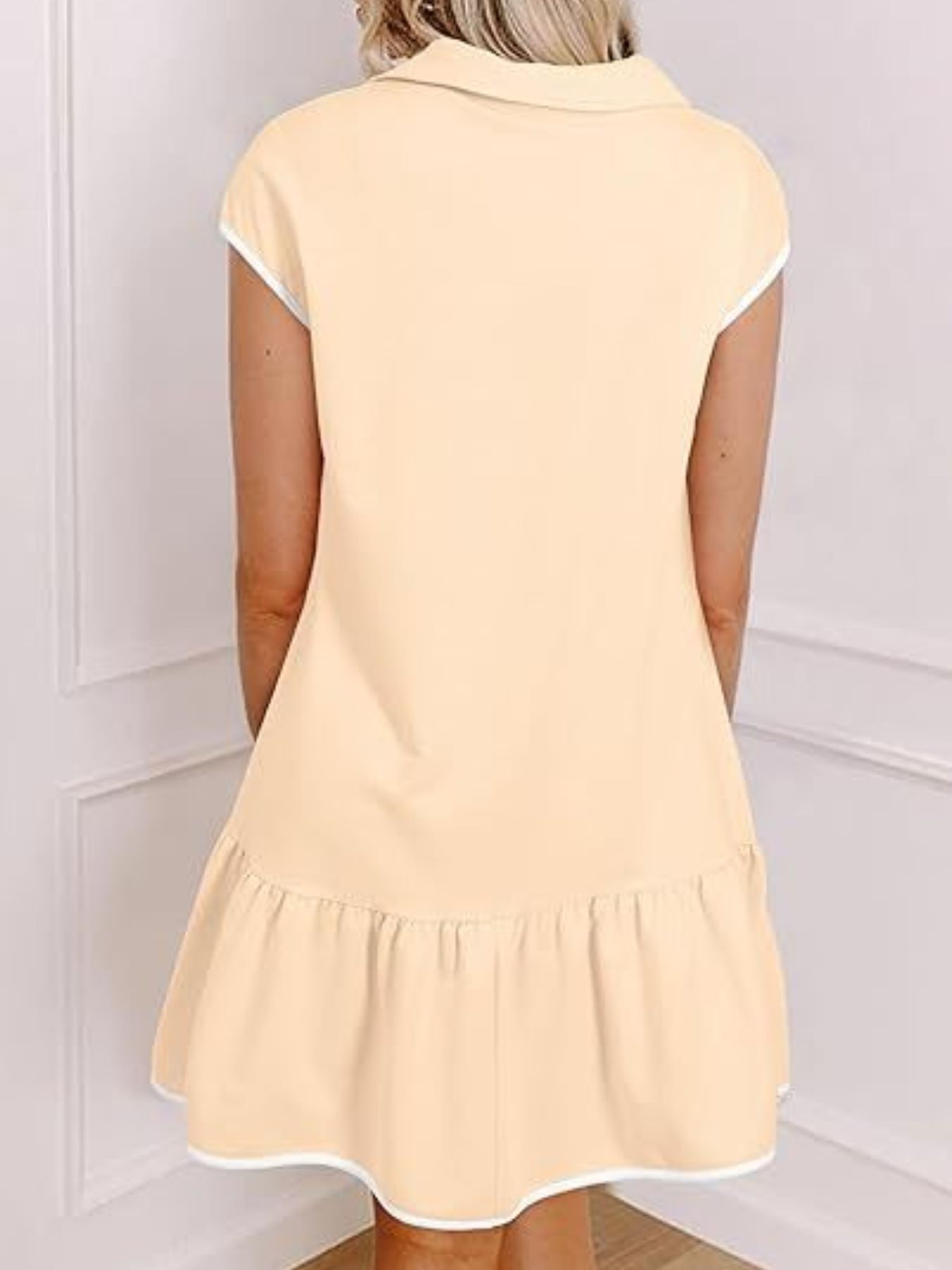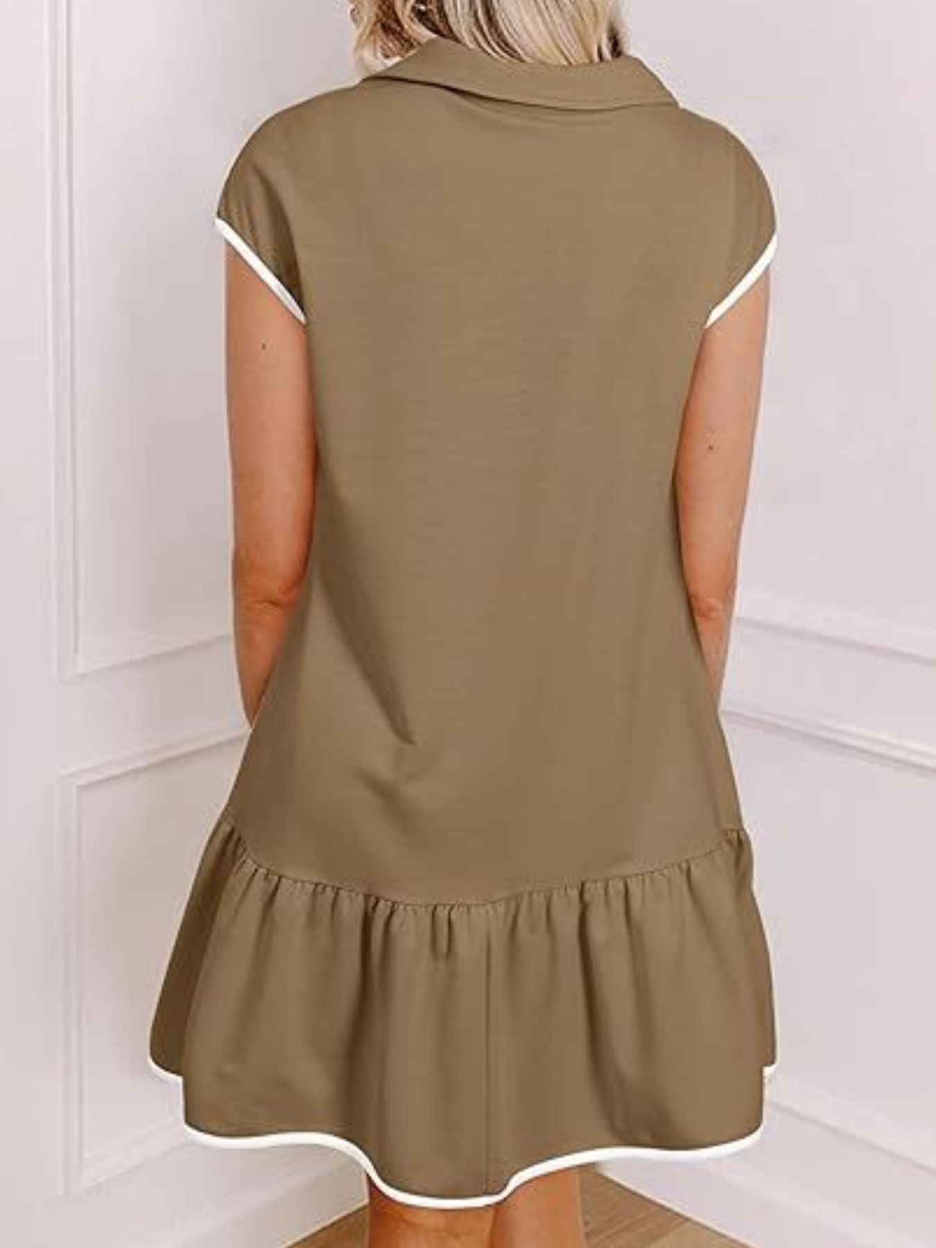 Zip Front Cap Sleeve Ruffle Hem Dress