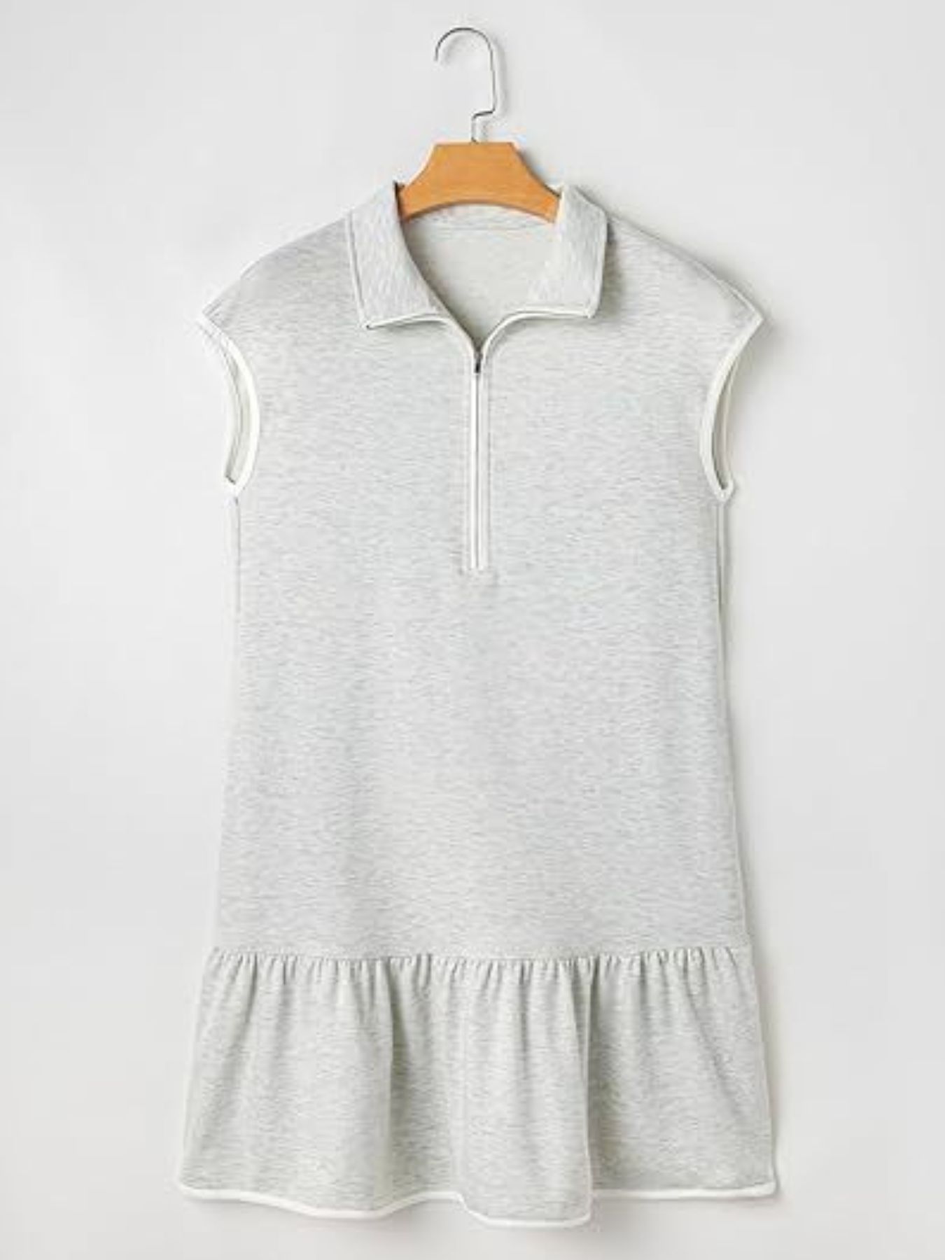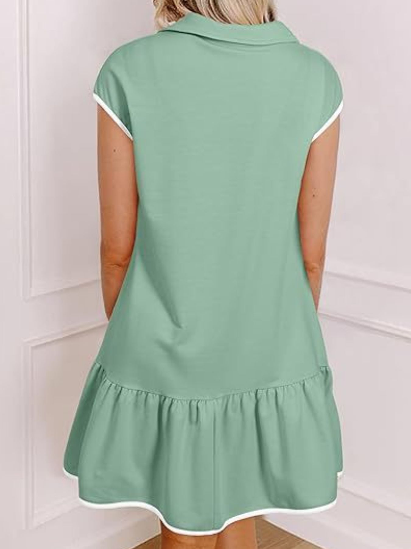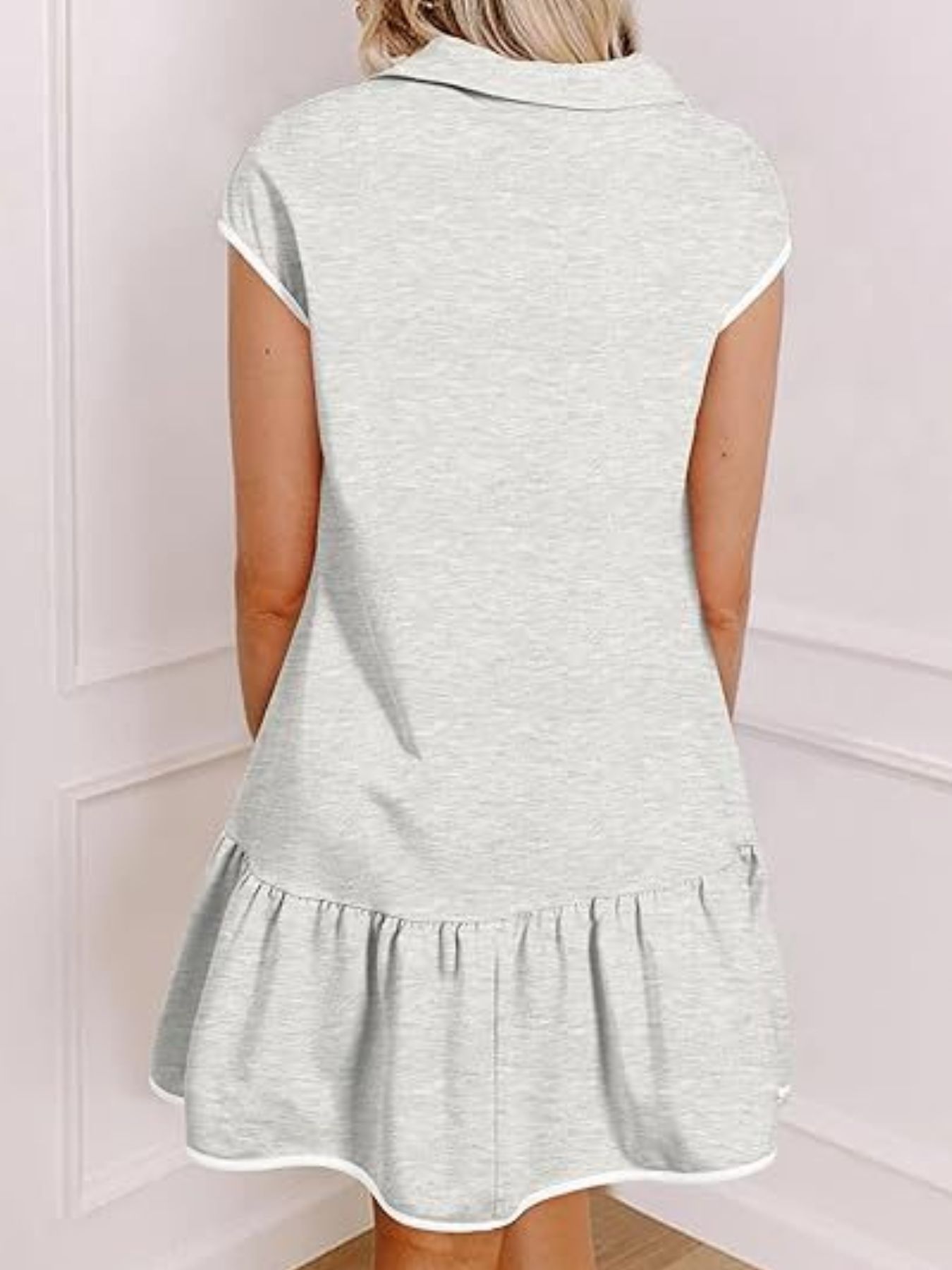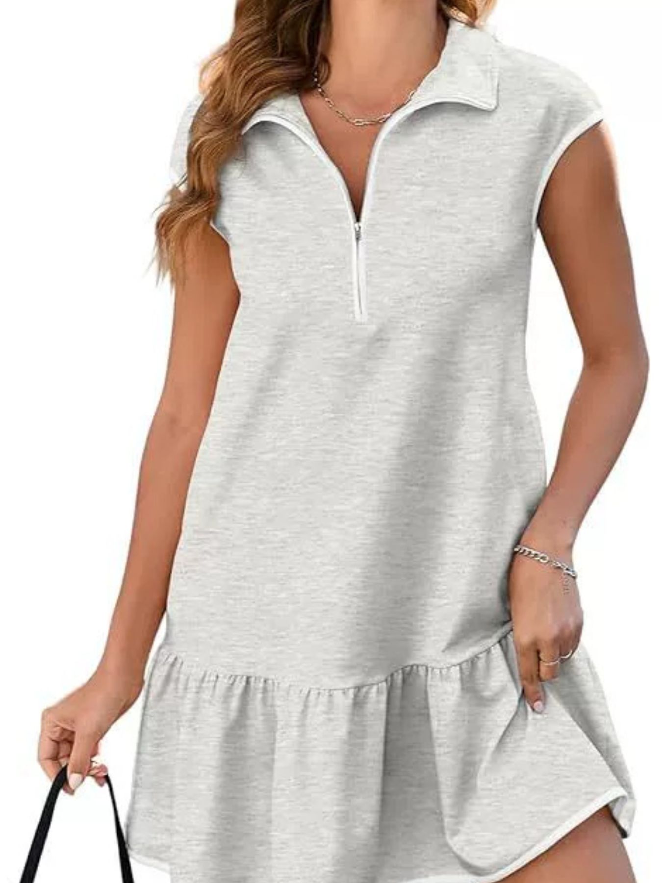 Zip Front Cap Sleeve Ruffle Hem Dress