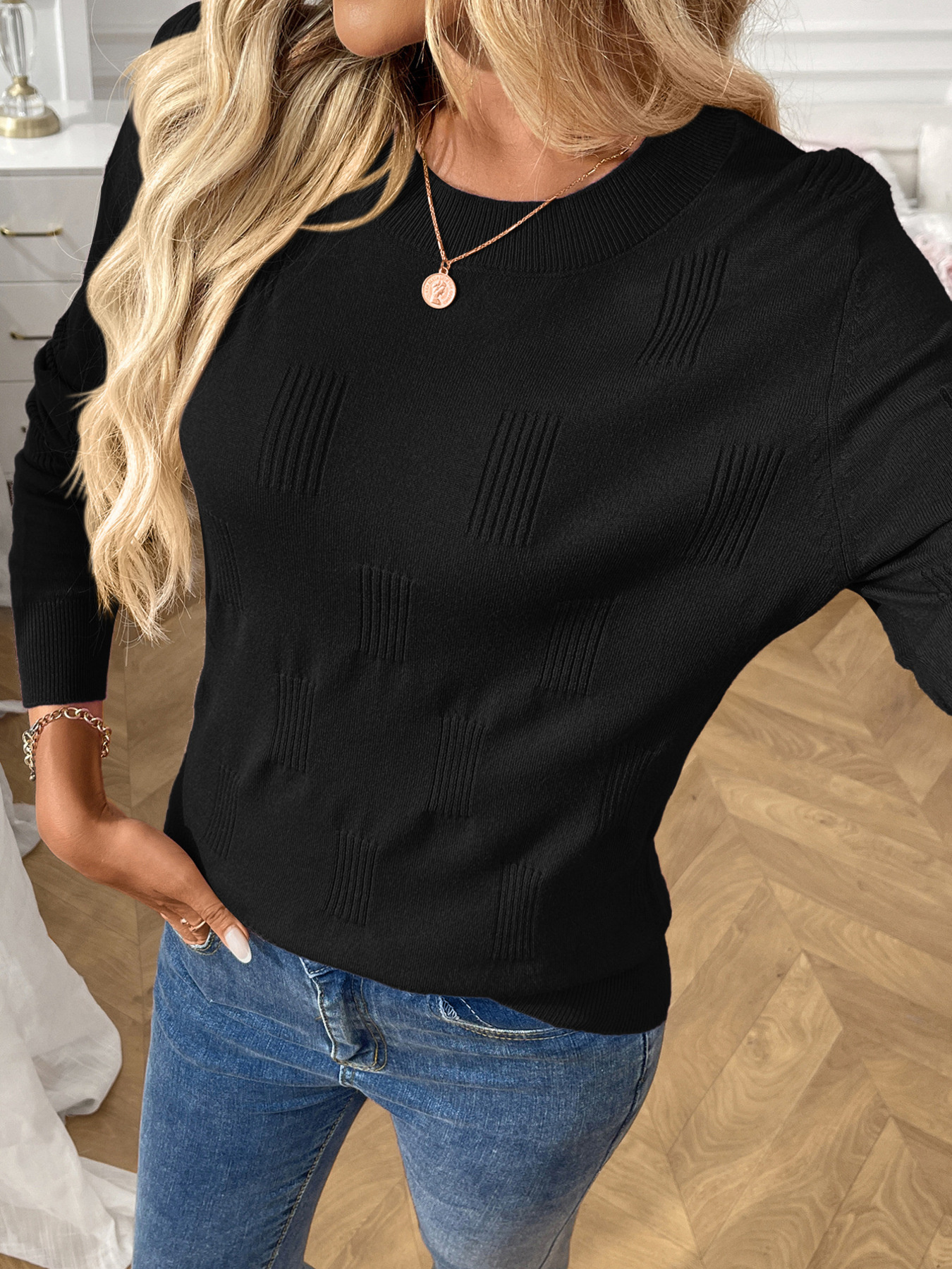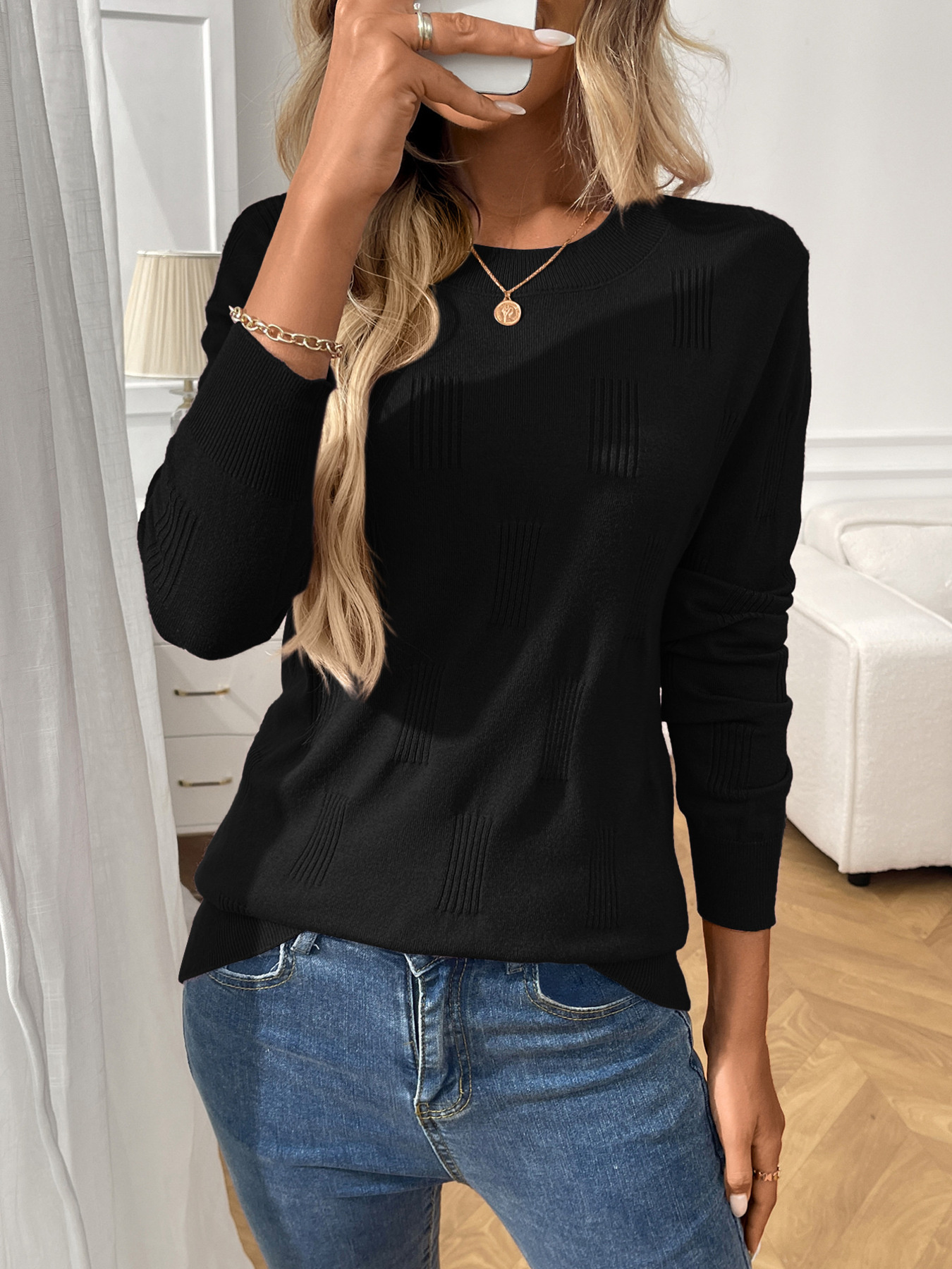 Round Neck Long Sleeve Knit Top