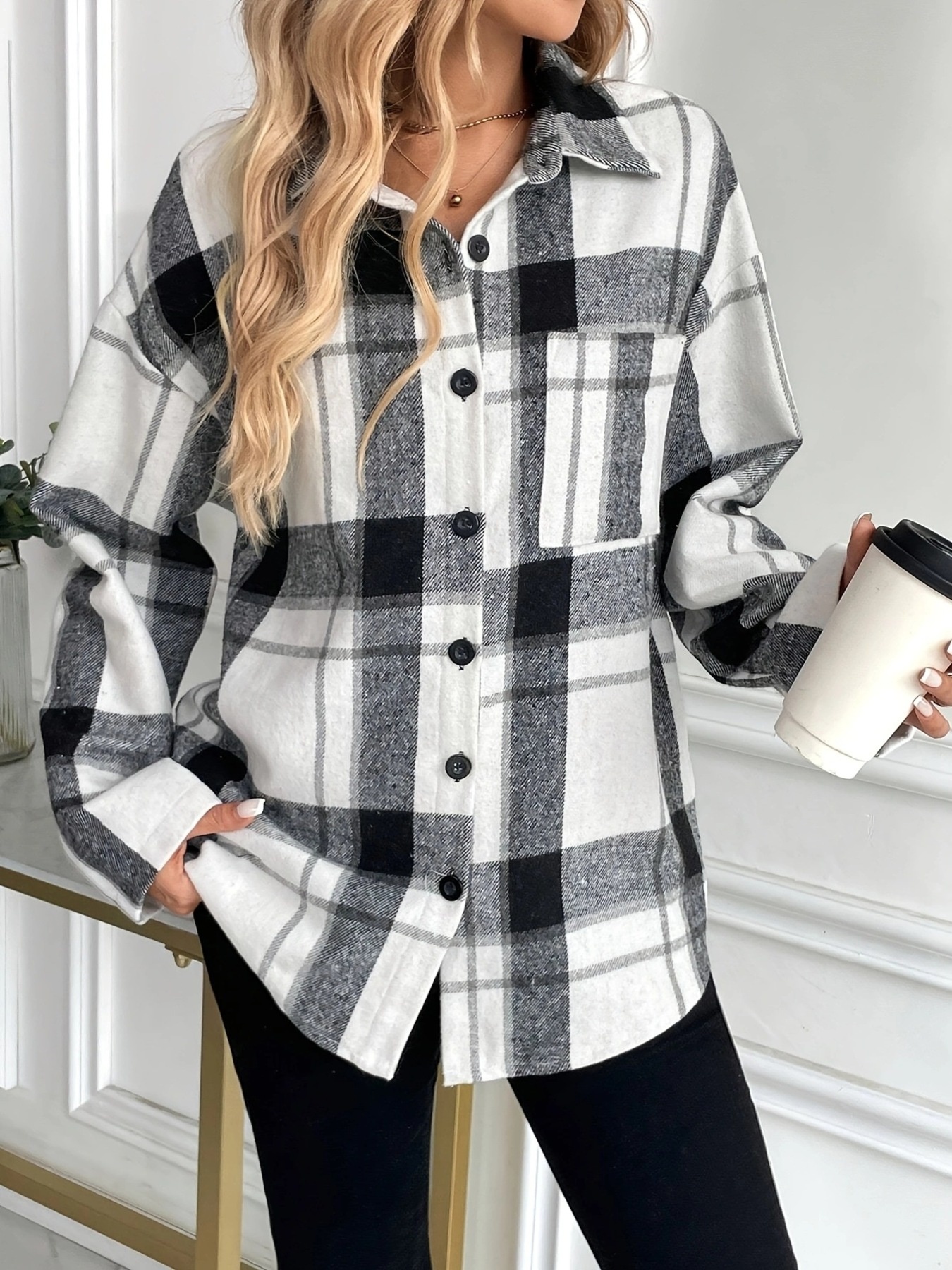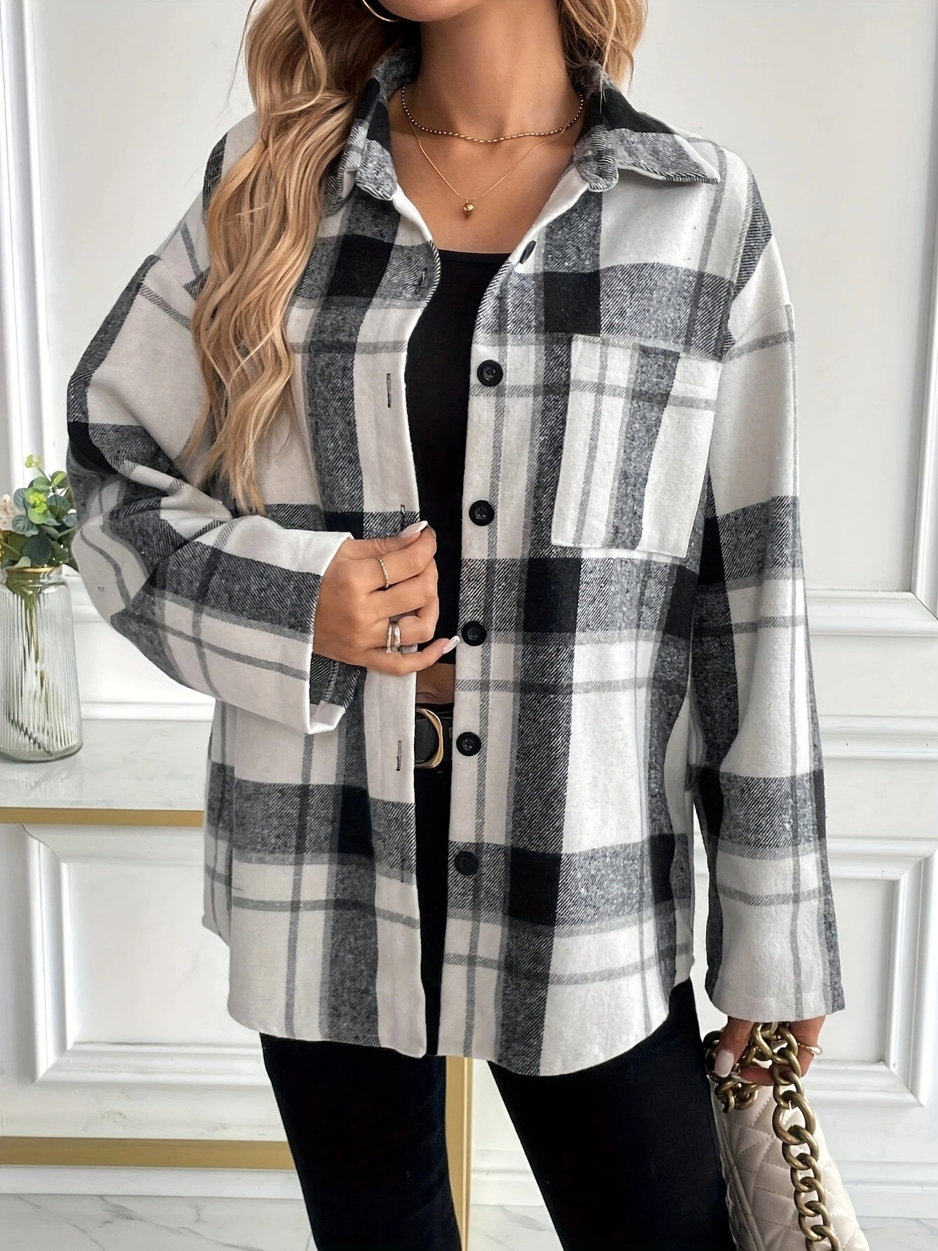 Oversized Plaid Button Up Shirt