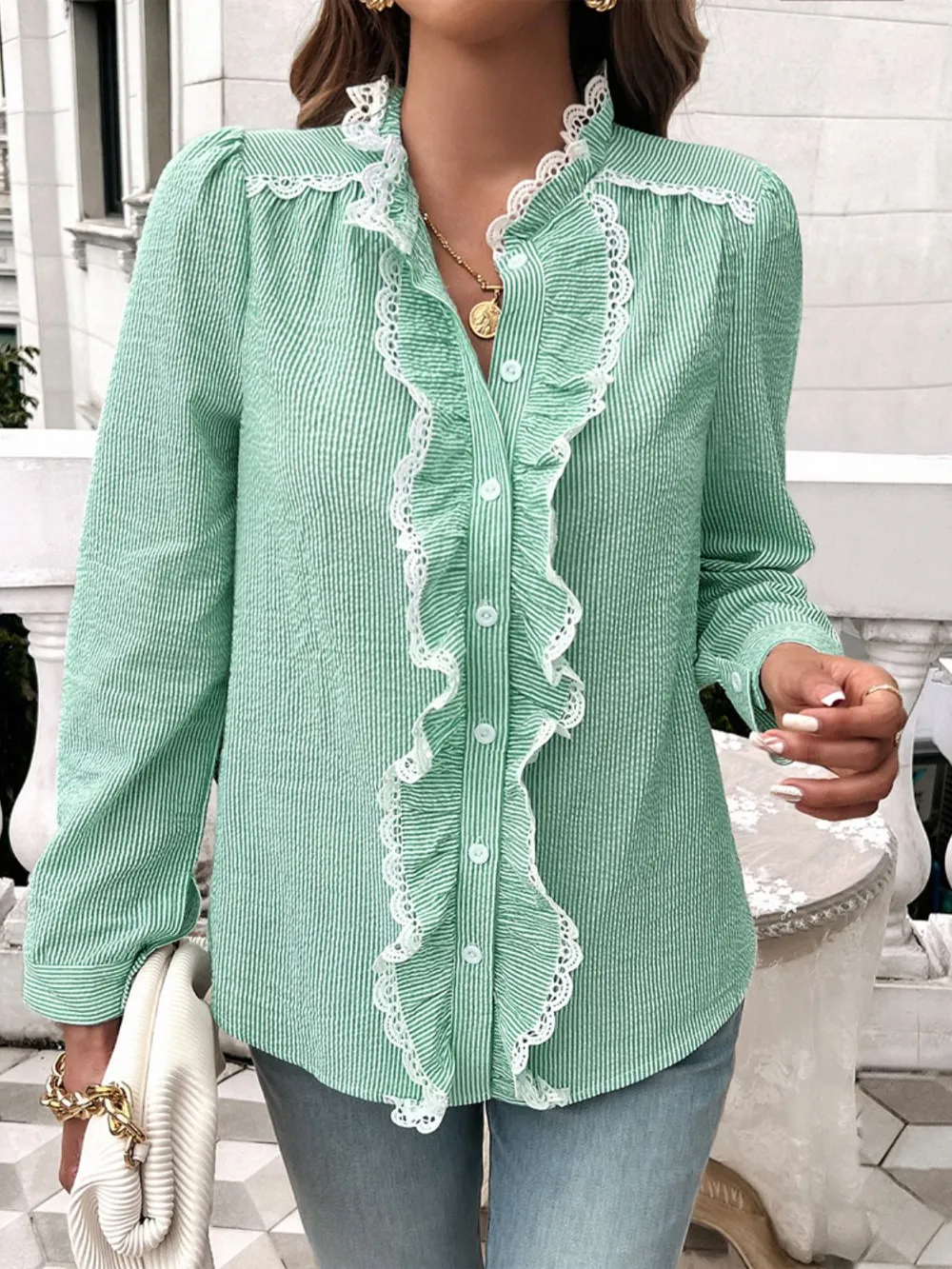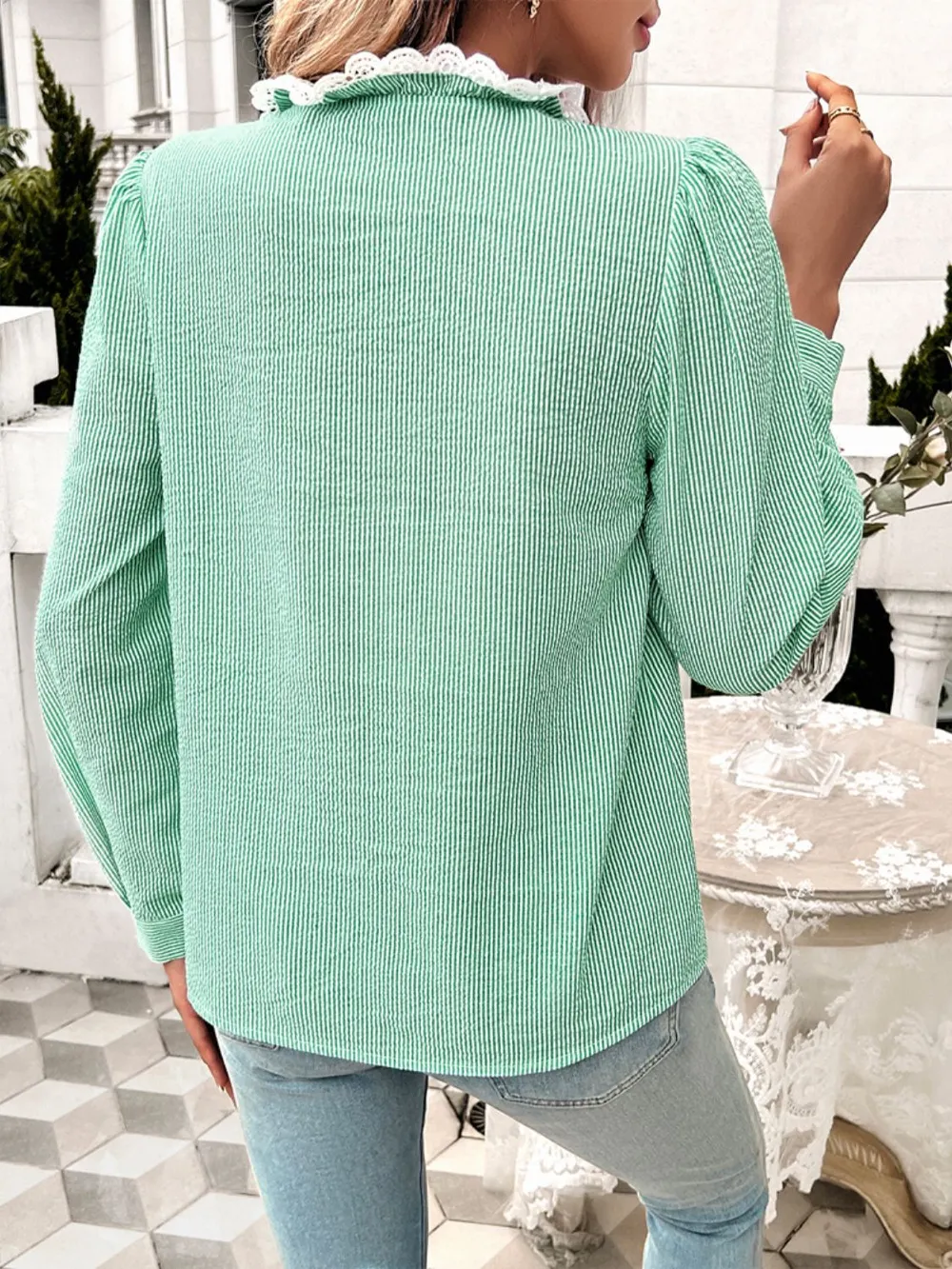 Devine Textured Lace Detail Long Sleeve Shirt