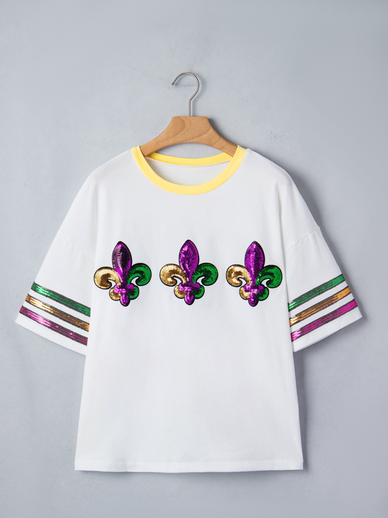 Sequin Mardi Gras Half Sleeve T Shirt