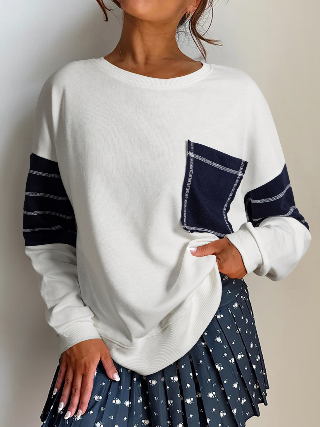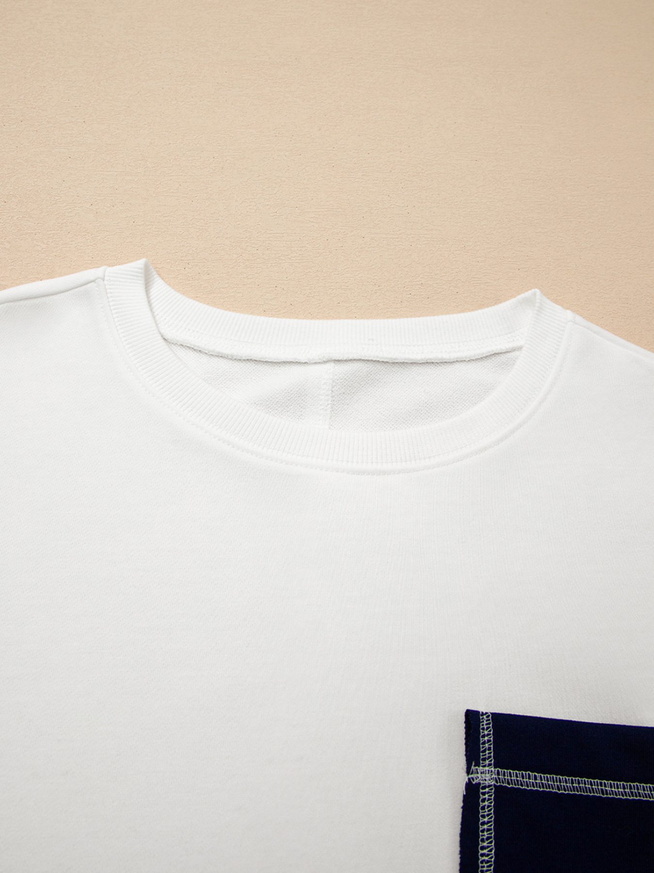 Exposed Seam Detail Color Block Patch Pocket Drop Shoulder Sweatshirt