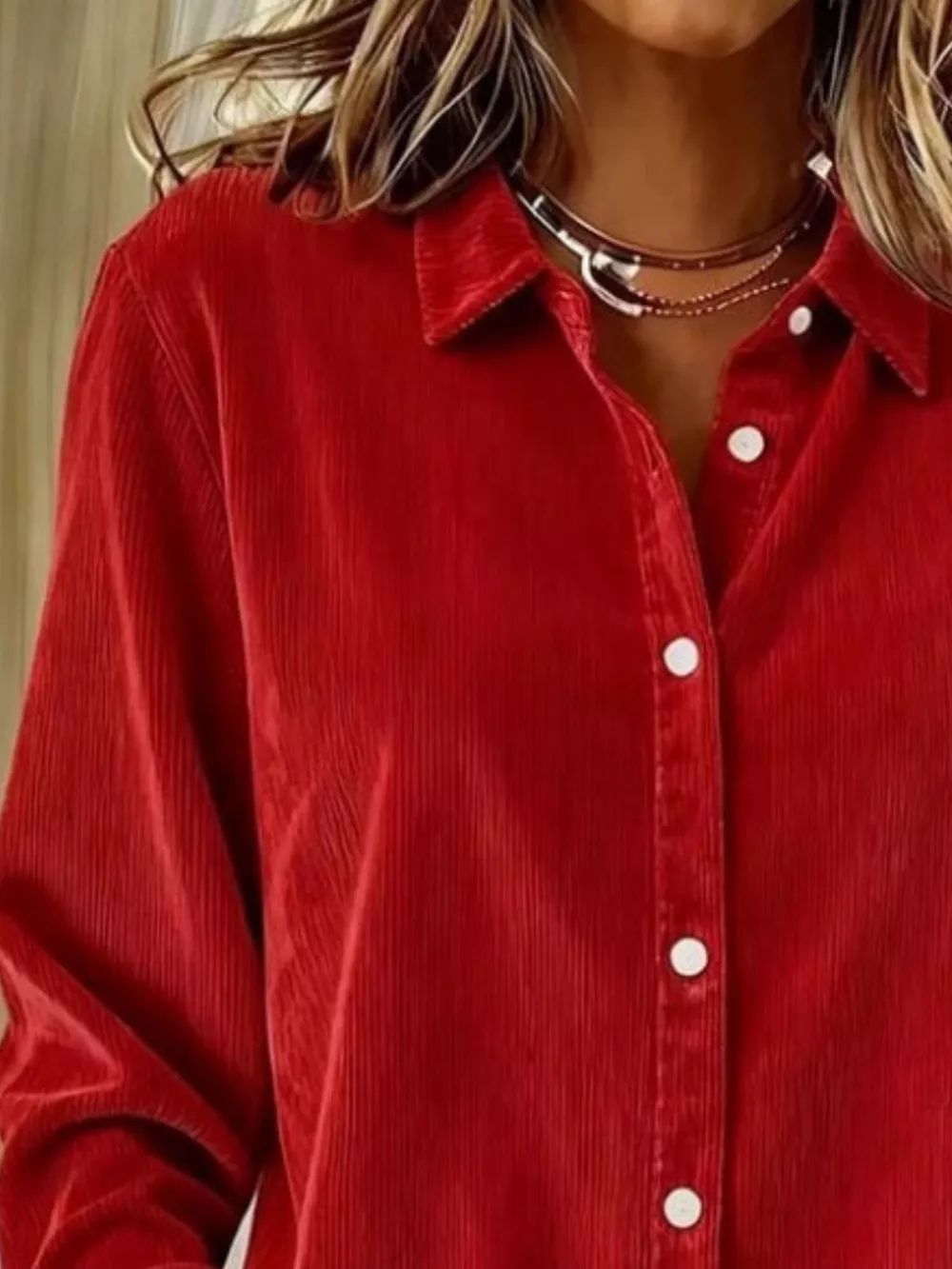 Full Size Corduroy Button-Down Shirt Plus Size