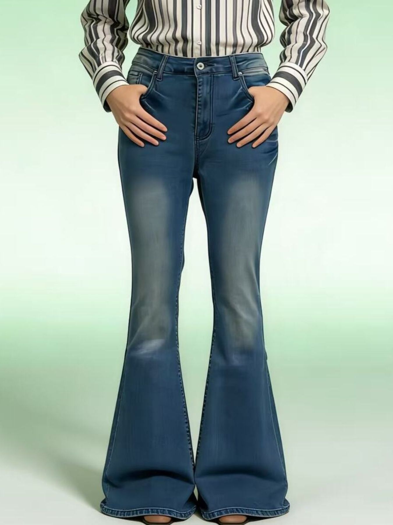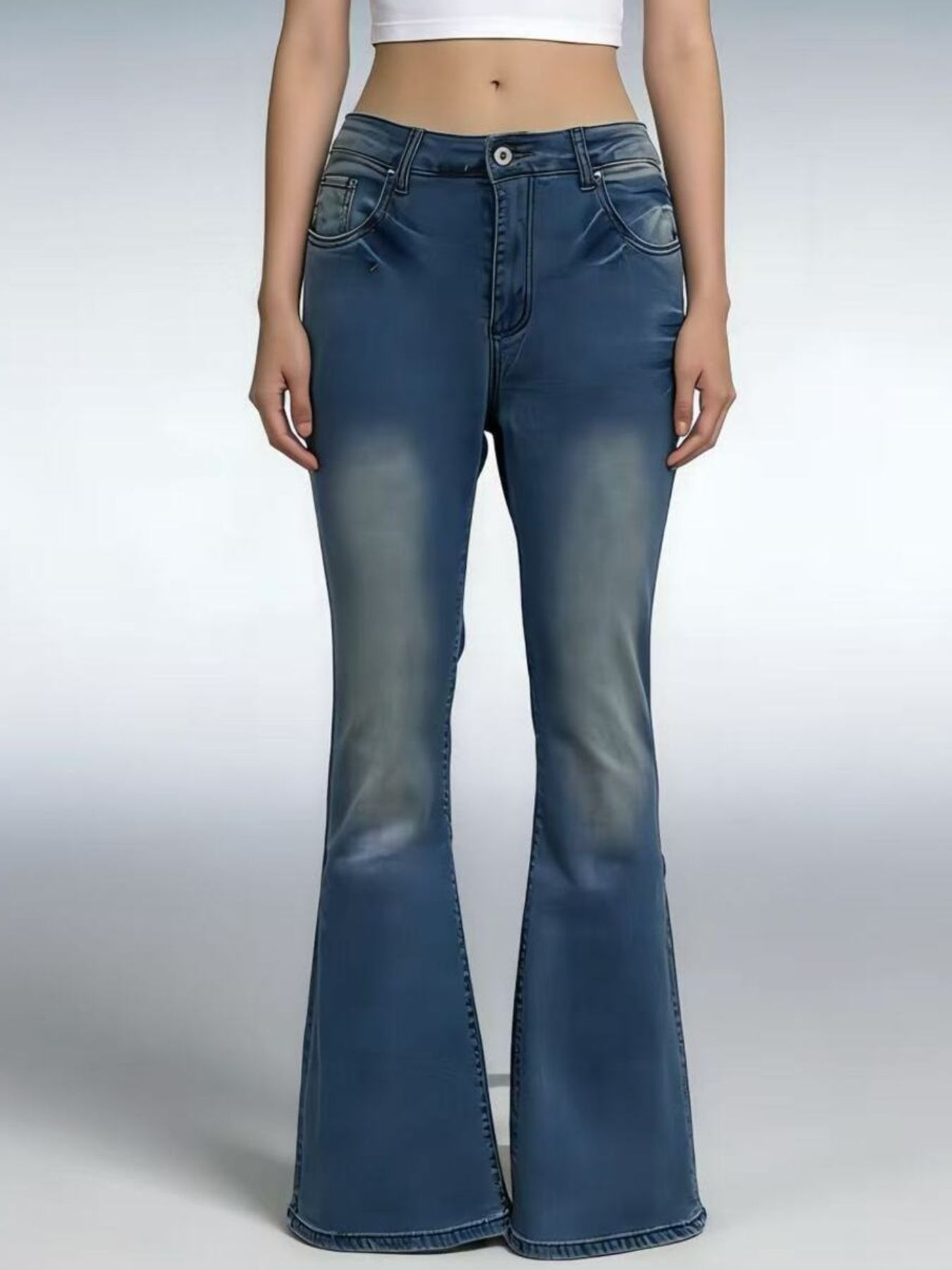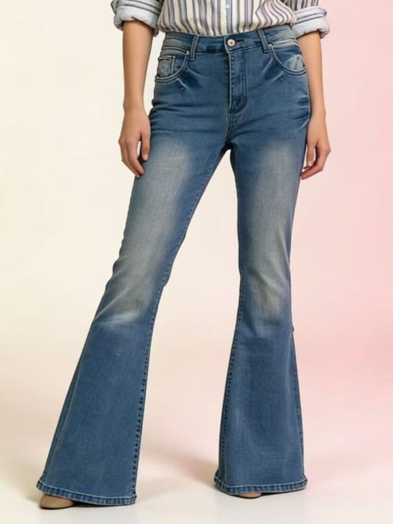 Full Size Vintage Wash High-Waisted Flare Jeans Plus Size