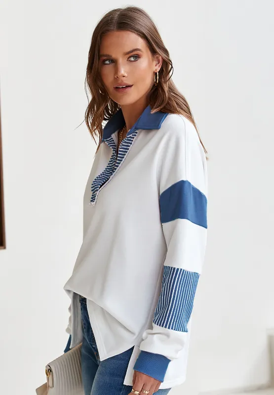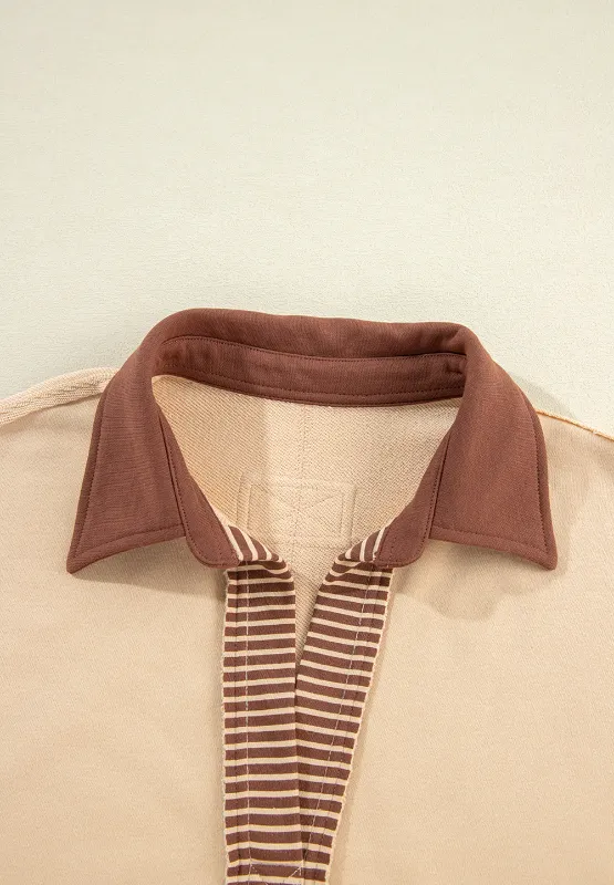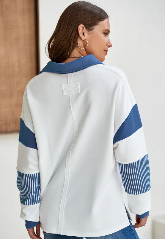 Color Block Johnny Collar Long Sleeve Sweatshirt