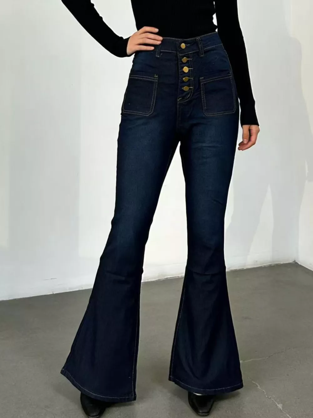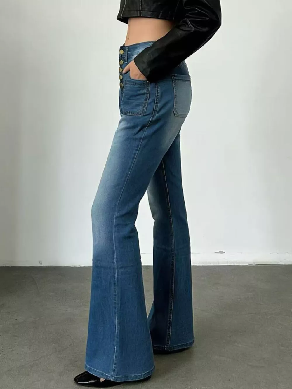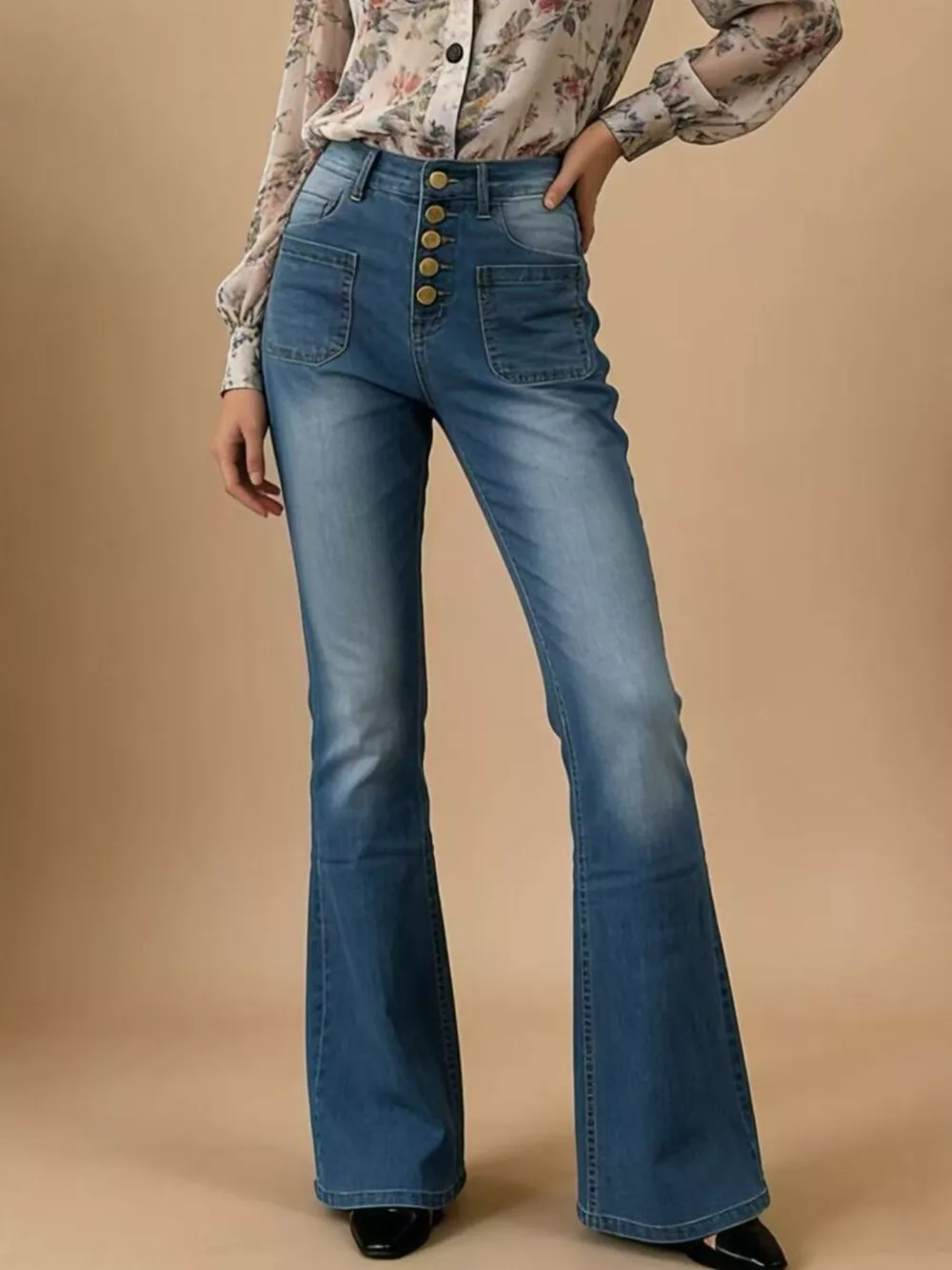 Full Size High-Waisted Button-Fly Flare Jeans Plus Size