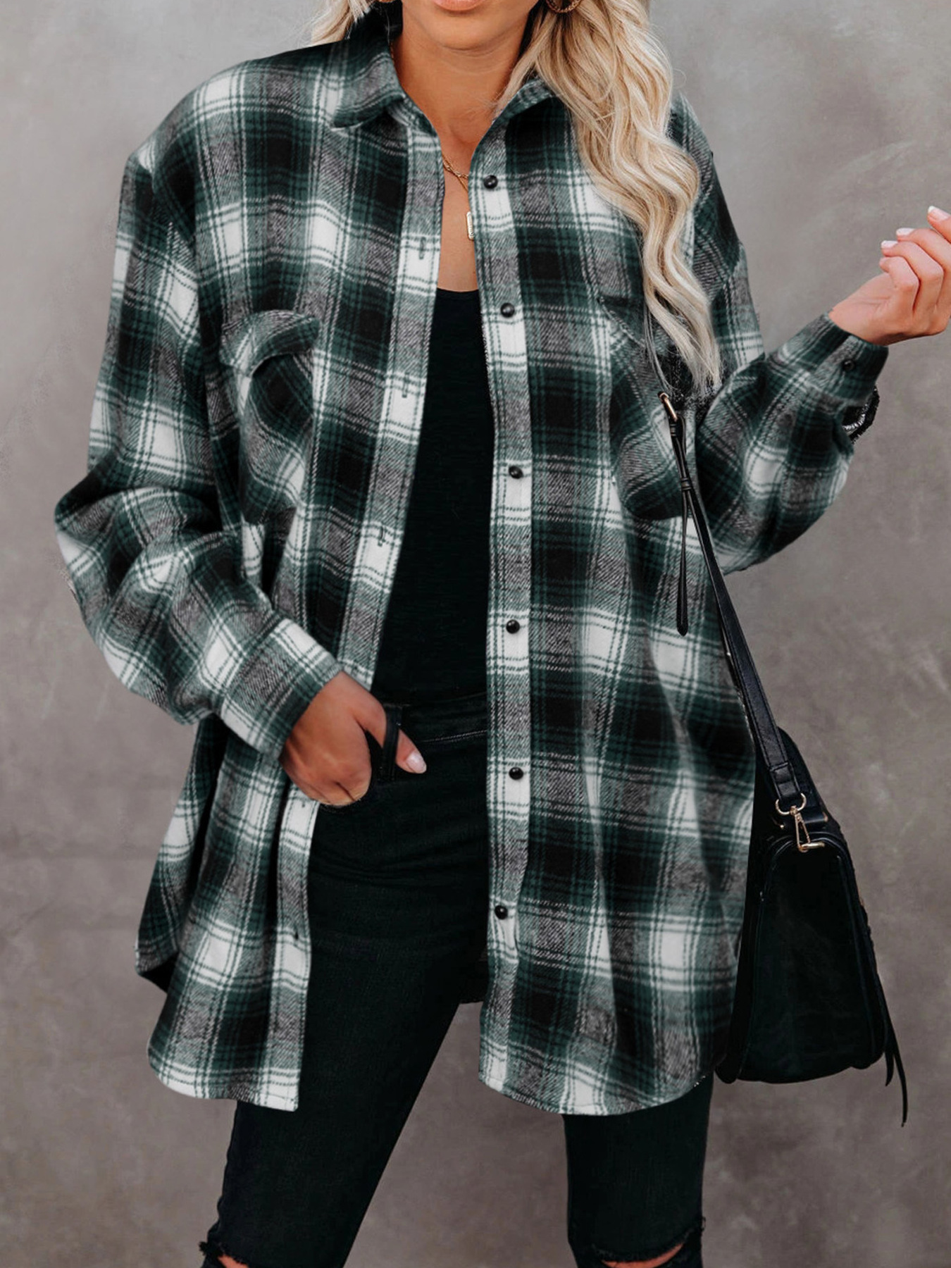 Full Size Plaid Button-Up Long Sleeve Shirt Plus Size