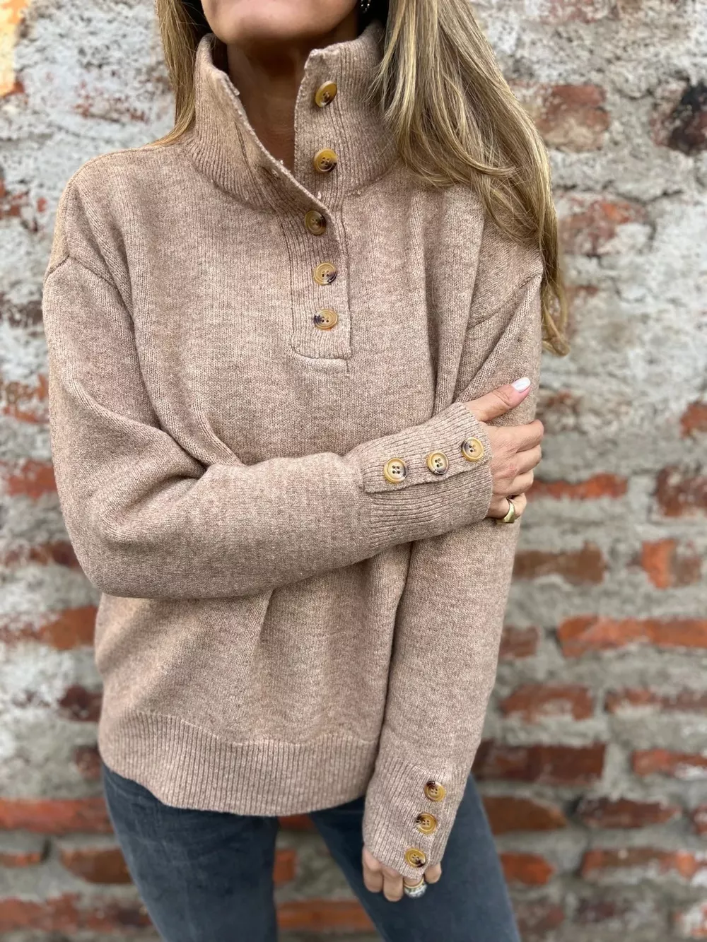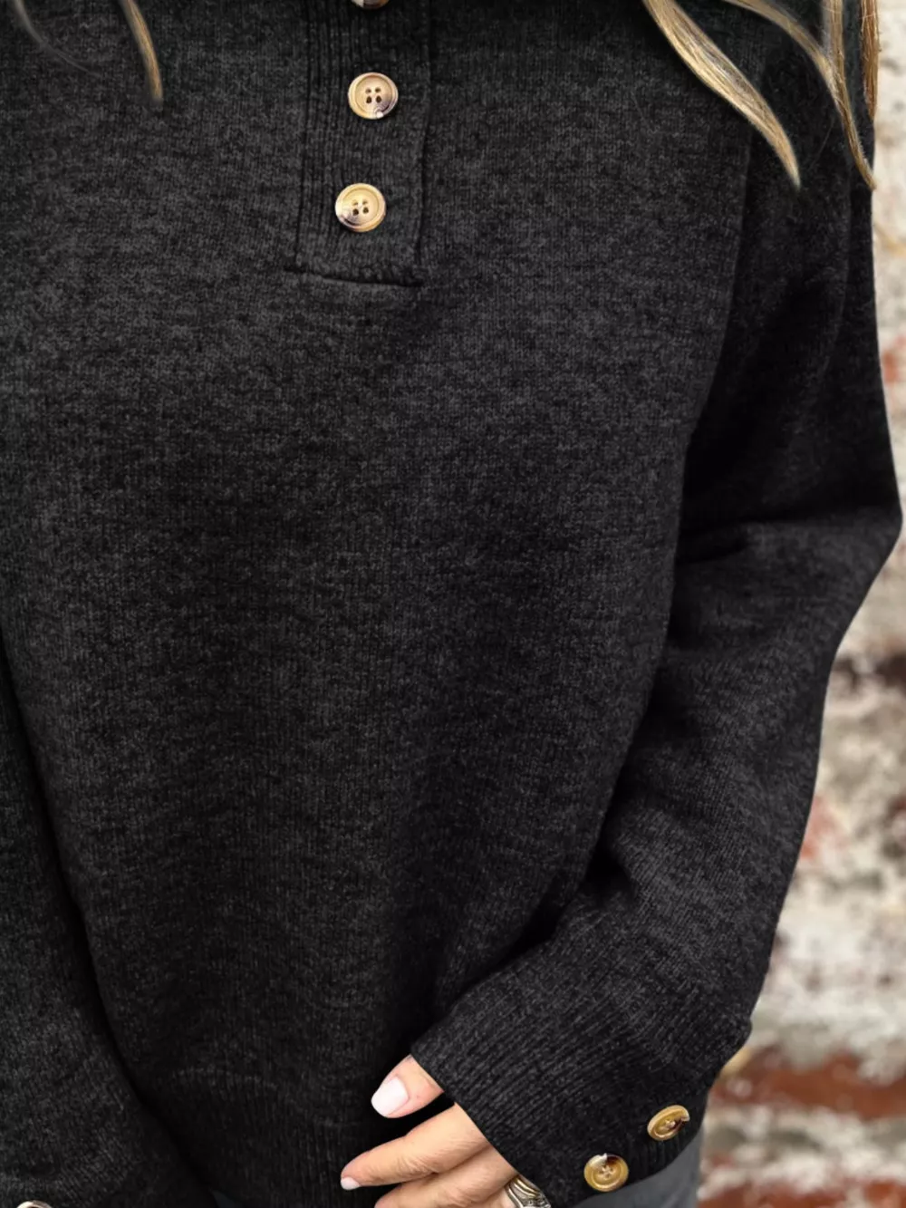 Full Size Button-Detail Turtleneck Sweater Plus Size