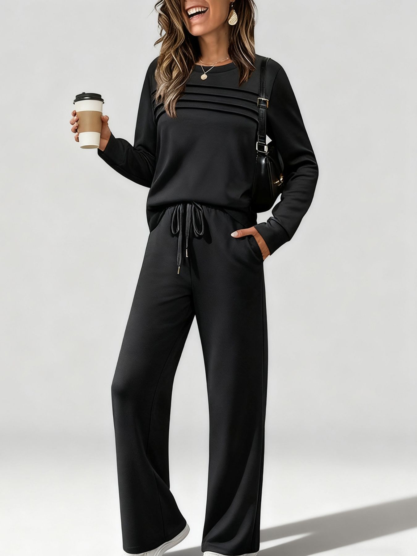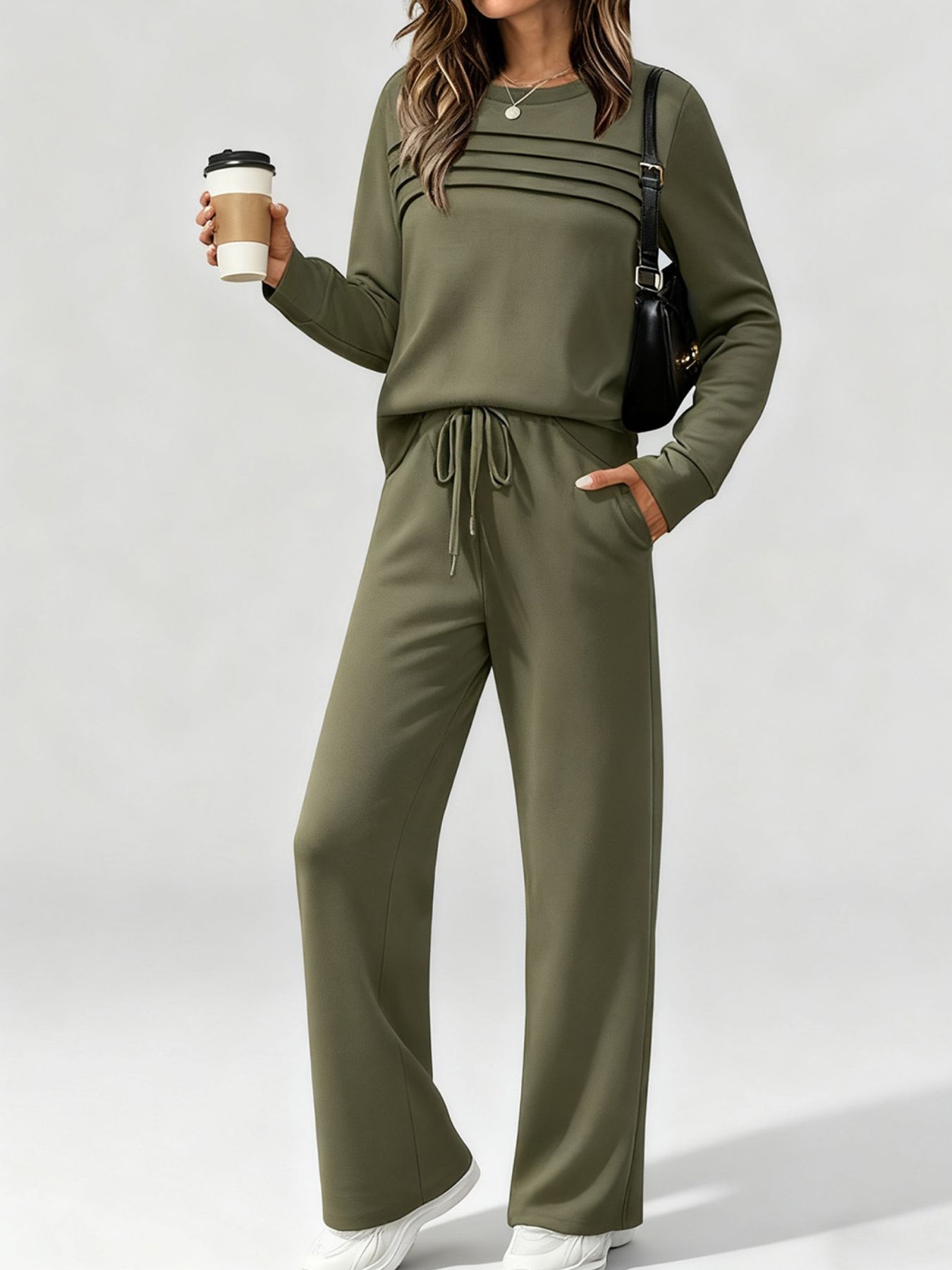 Full Size Casual Long Sleeve Top And Pants Set Plus Size