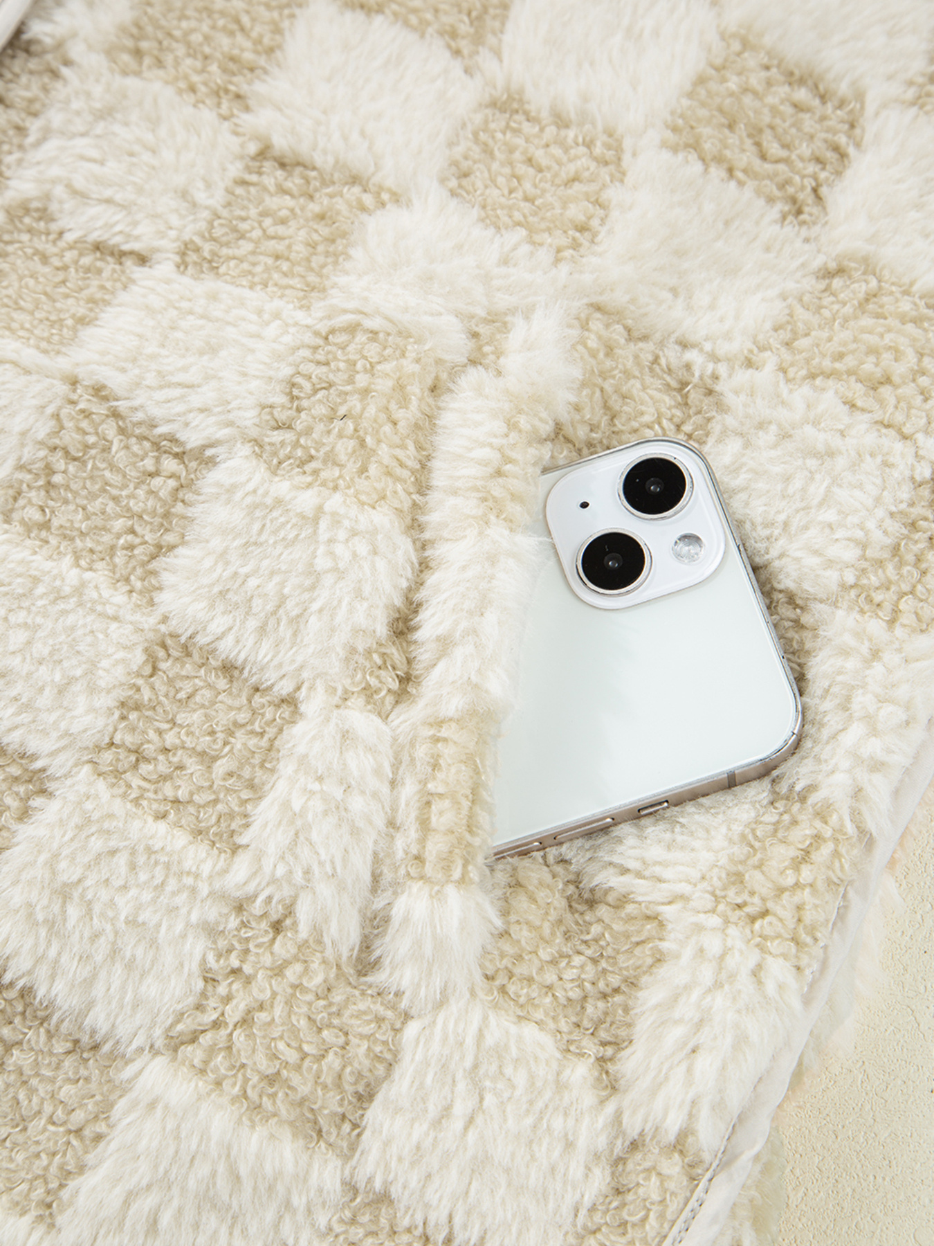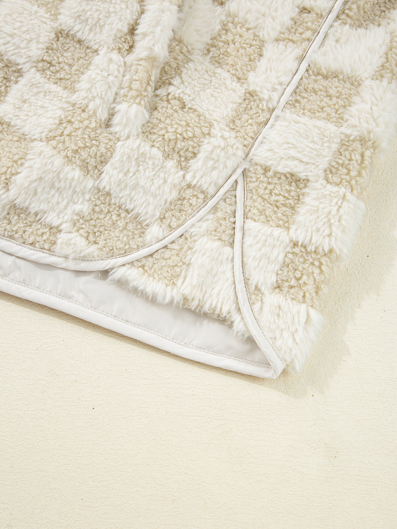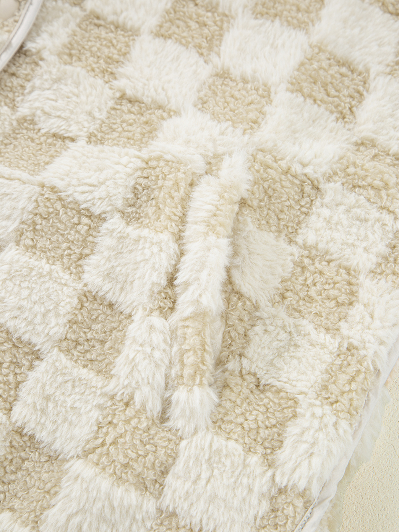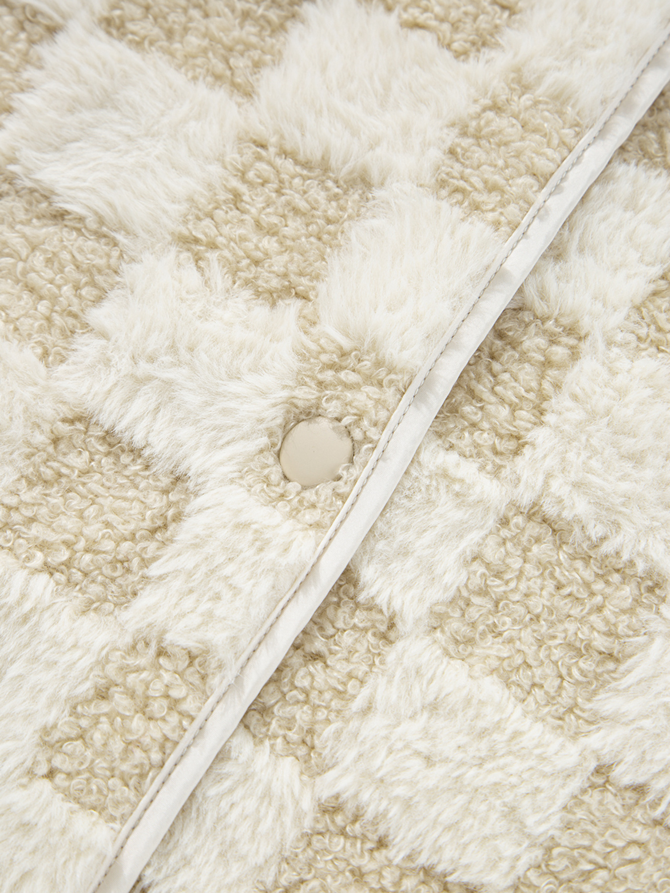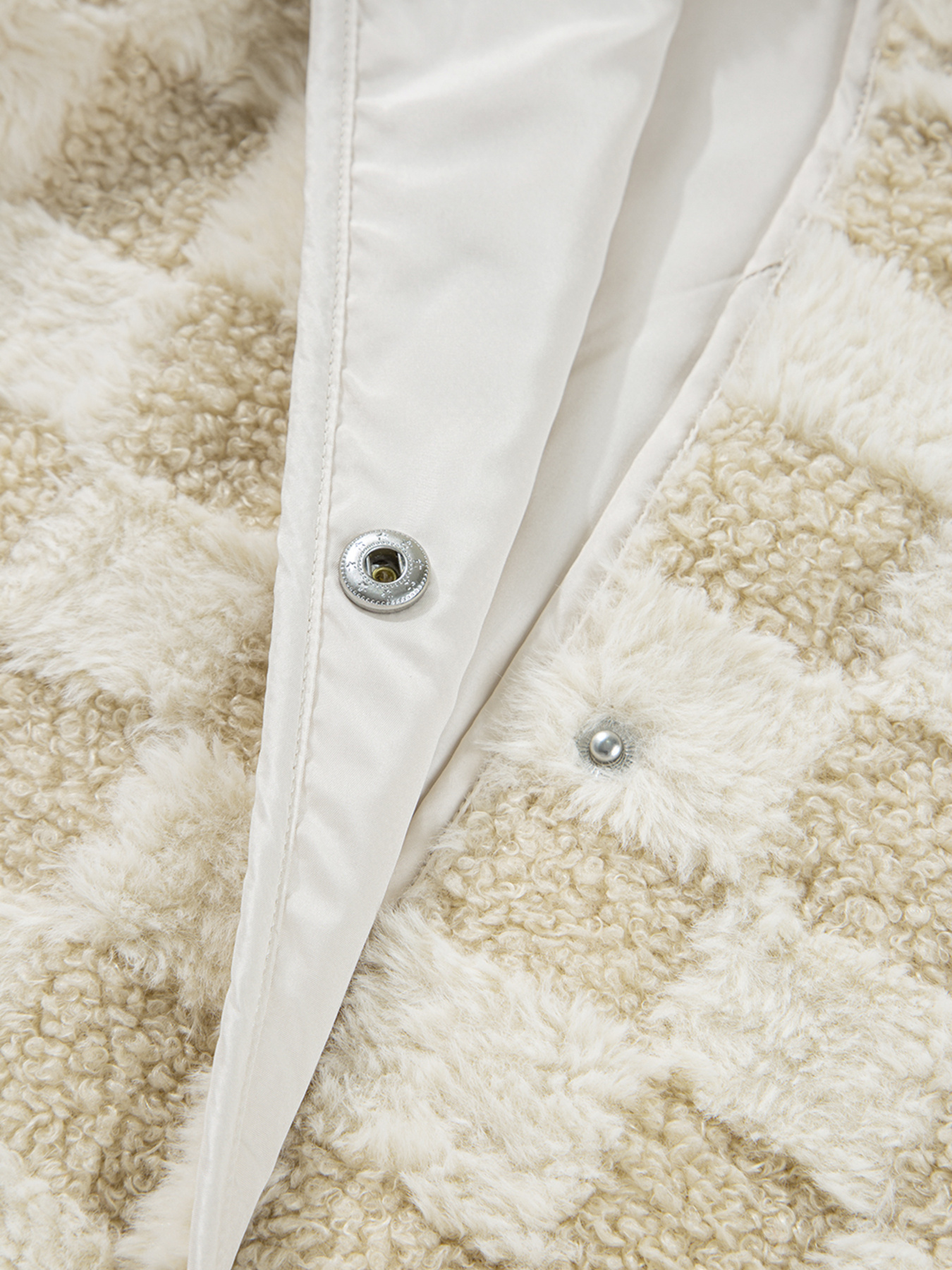 Sherpa Checkerboard Snap Button Vest Coat With Pocket