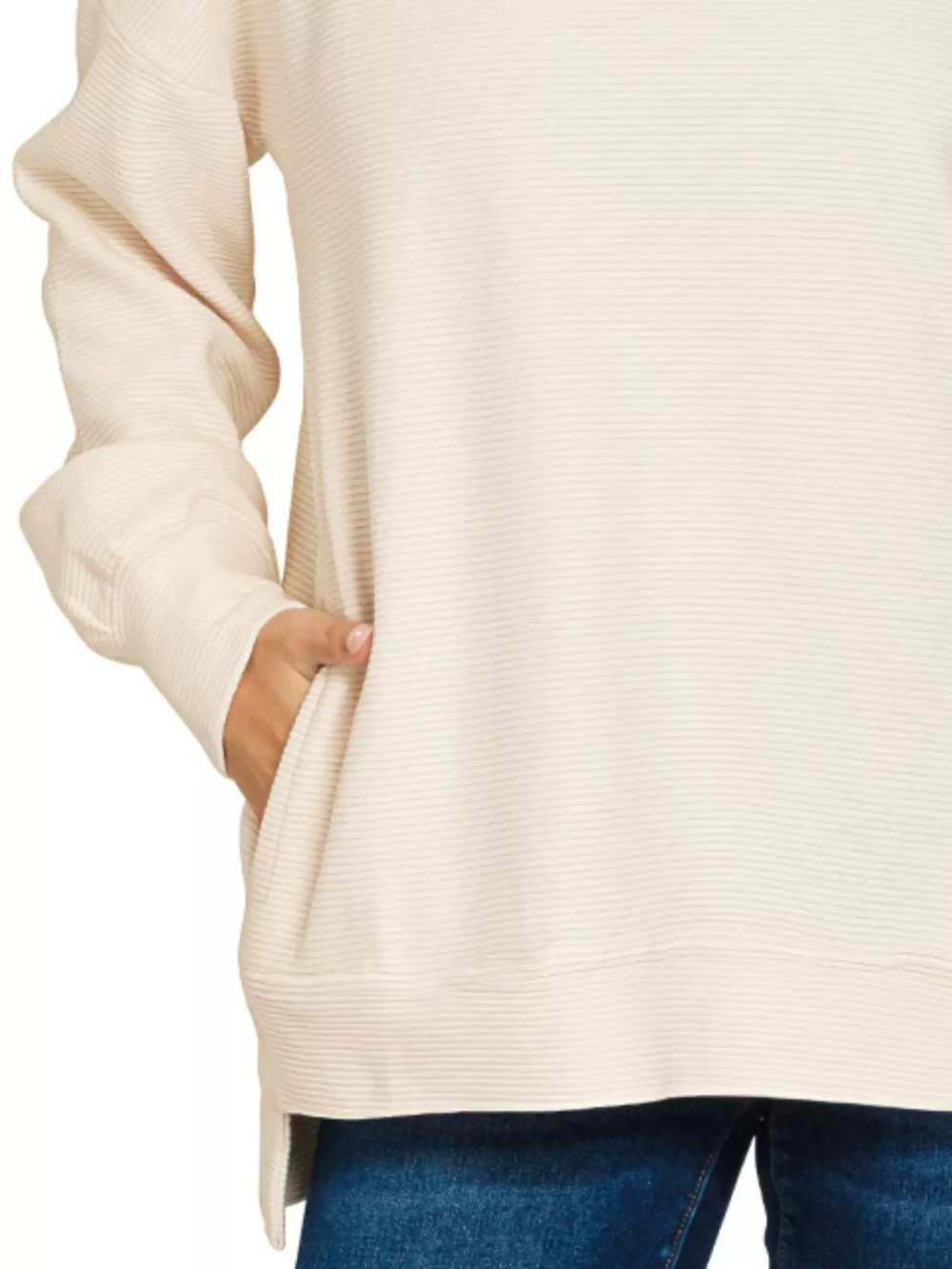 Zenana Full Size Acid Washed Double Ribbed Hi-Low Sweatshirt Plus Size