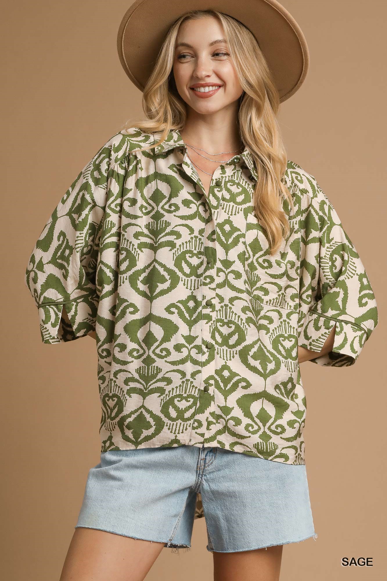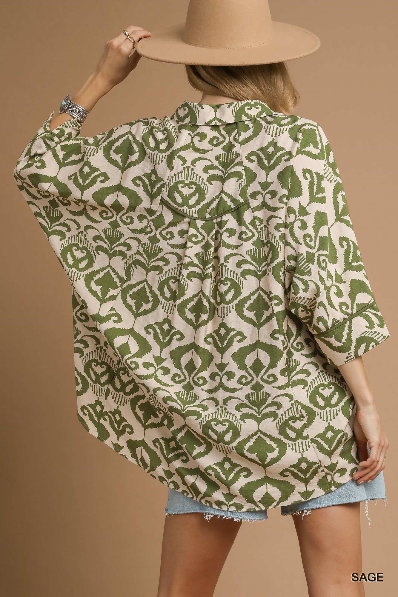 Umgee Abstract Print Button-Up Oversized Shirt