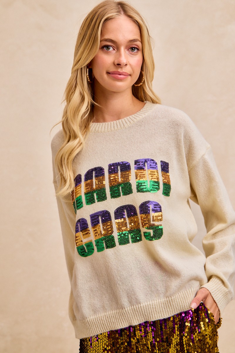Bibi Mardi Gras Sequin Lattering Knit Top