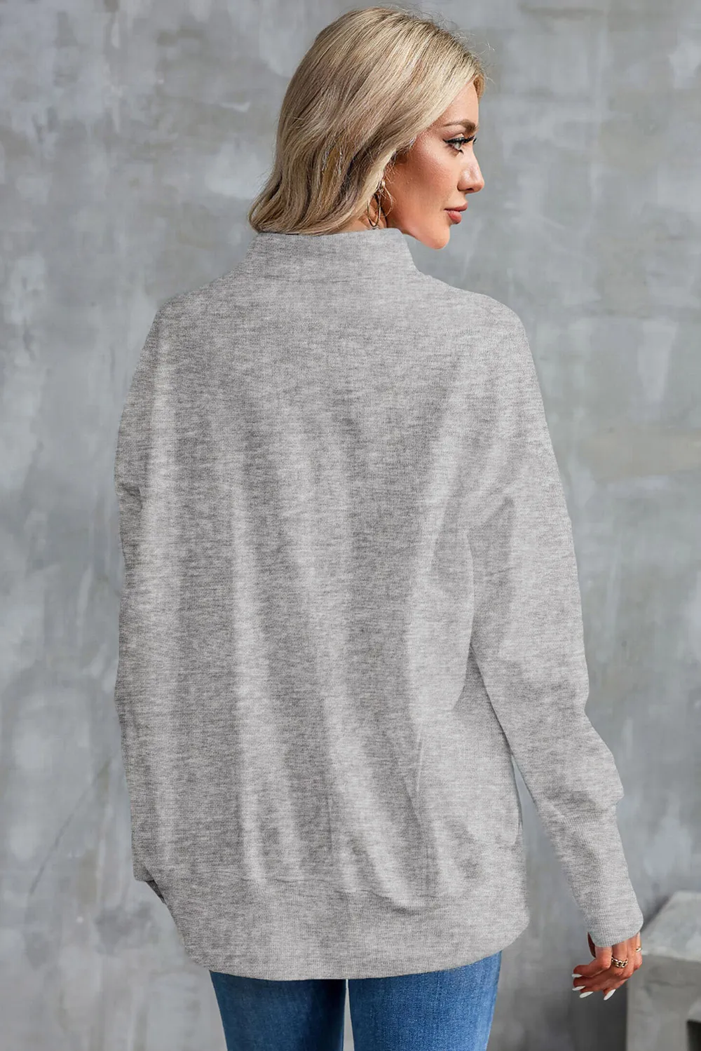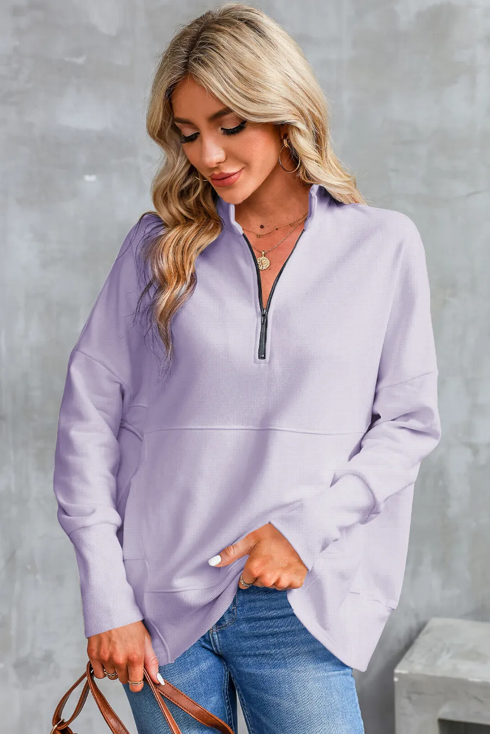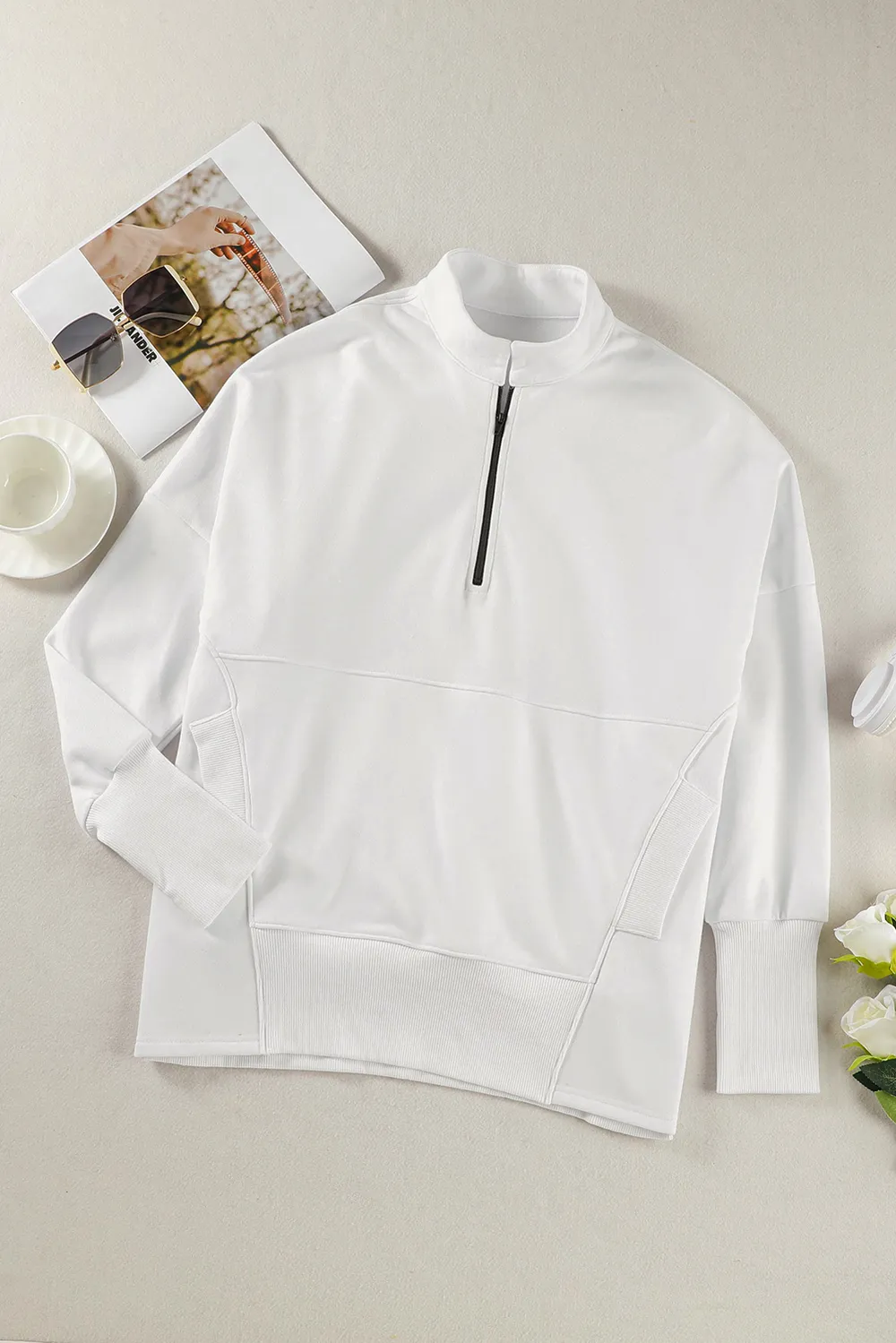 Half Zip Pocketed Dropped Shoulder Sweatshirt