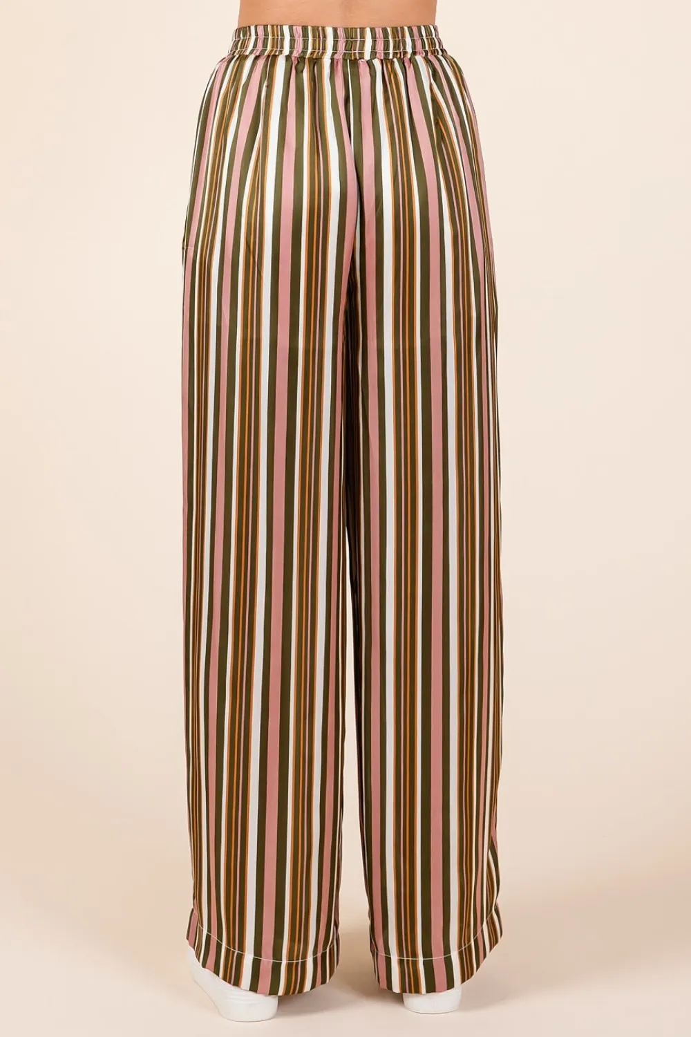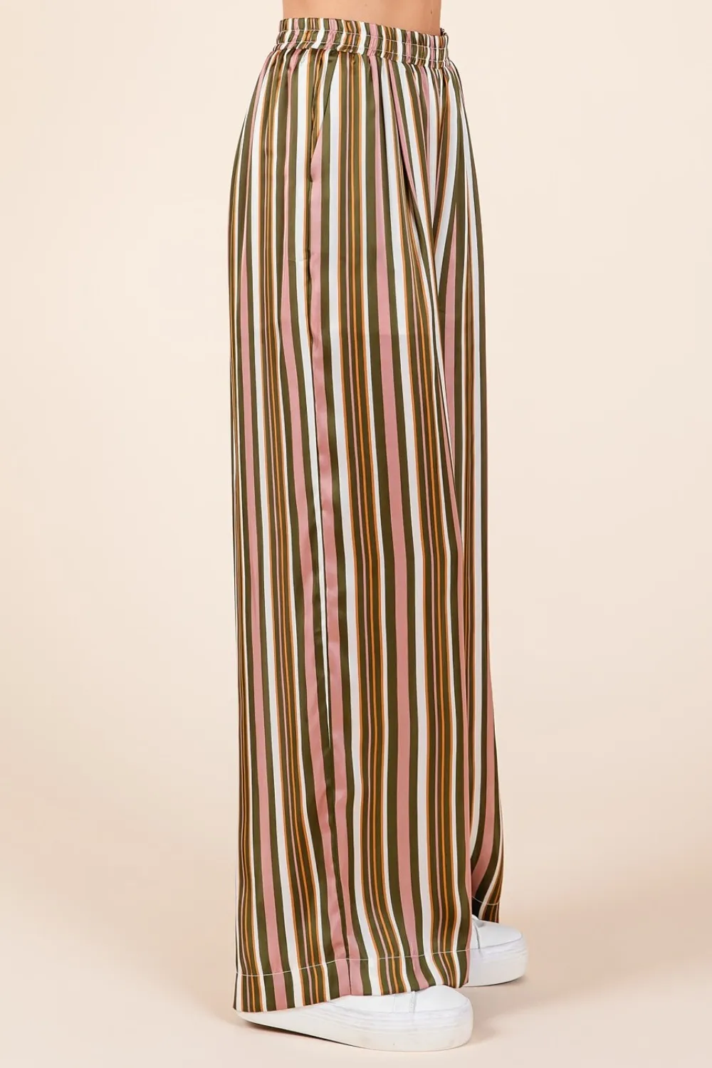 Mittoshop Striped Satin Elastic Waist Wide Leg Pants
