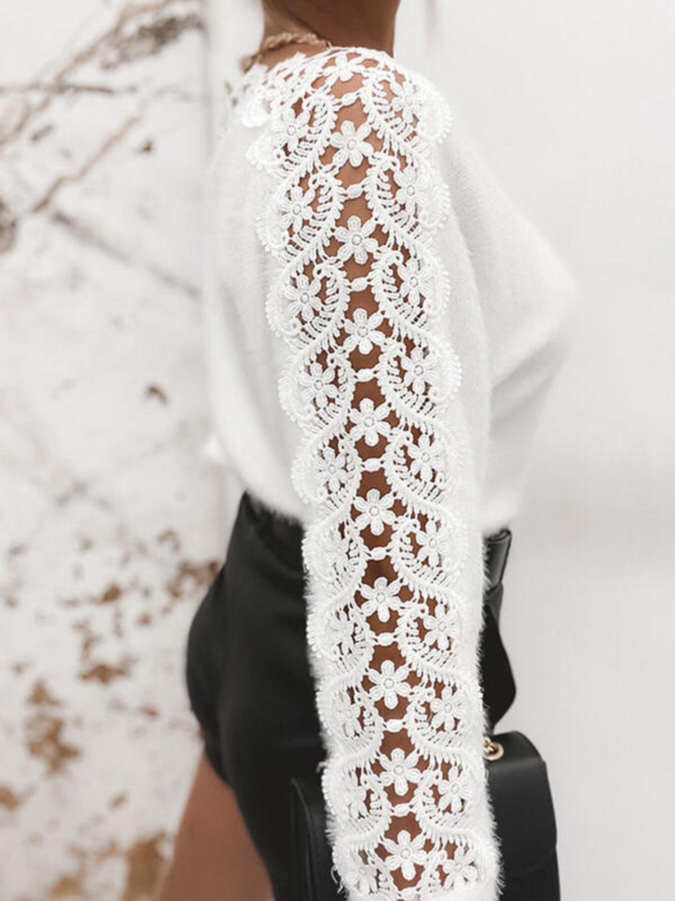 Lace Trim Round Neck Sweater