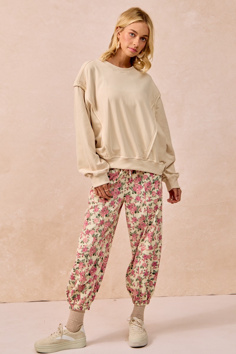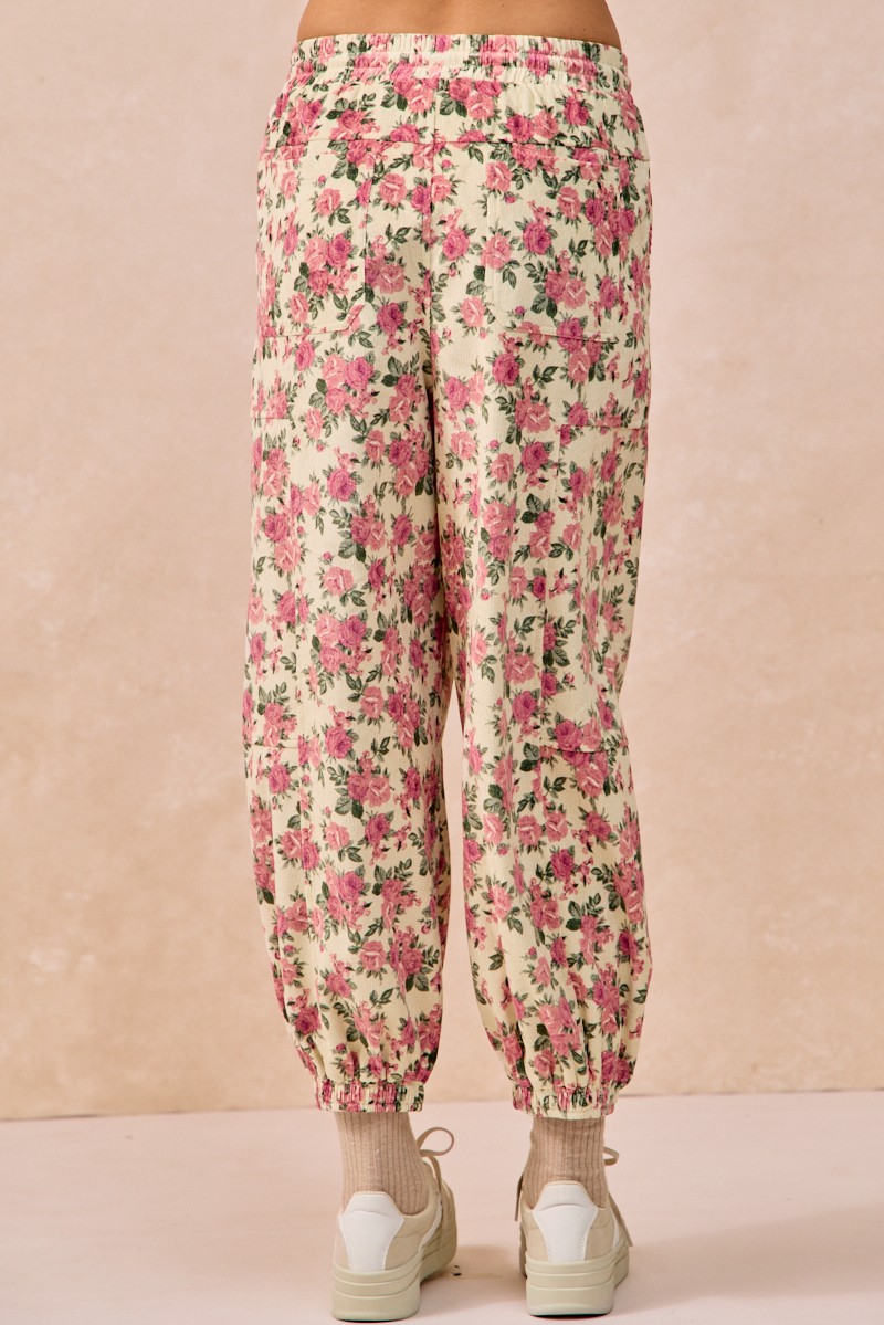 Bibi Floral Printed Twill Drawstring Pants With Elastic Band