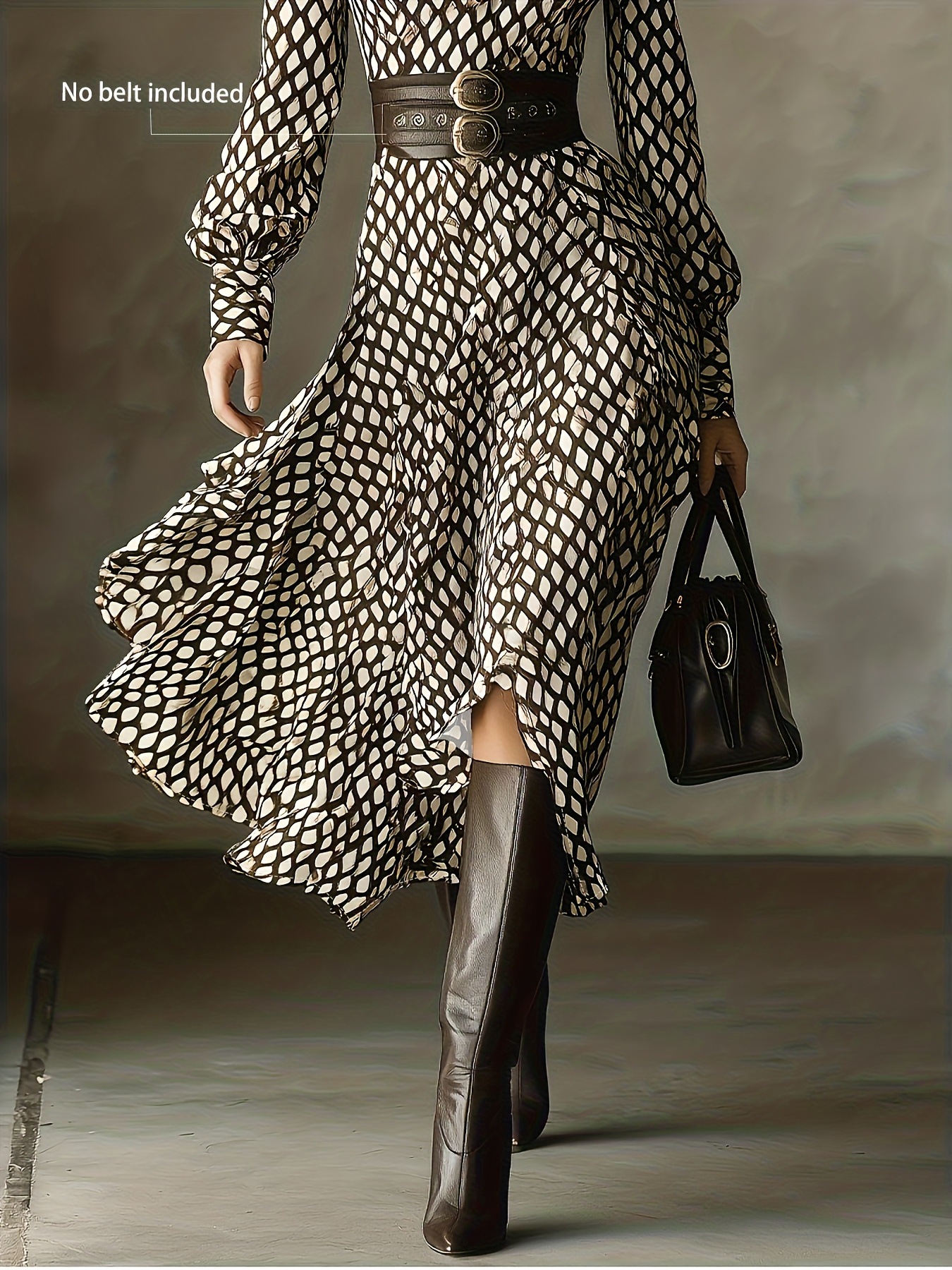 Printed Long Sleeve Midi Dress