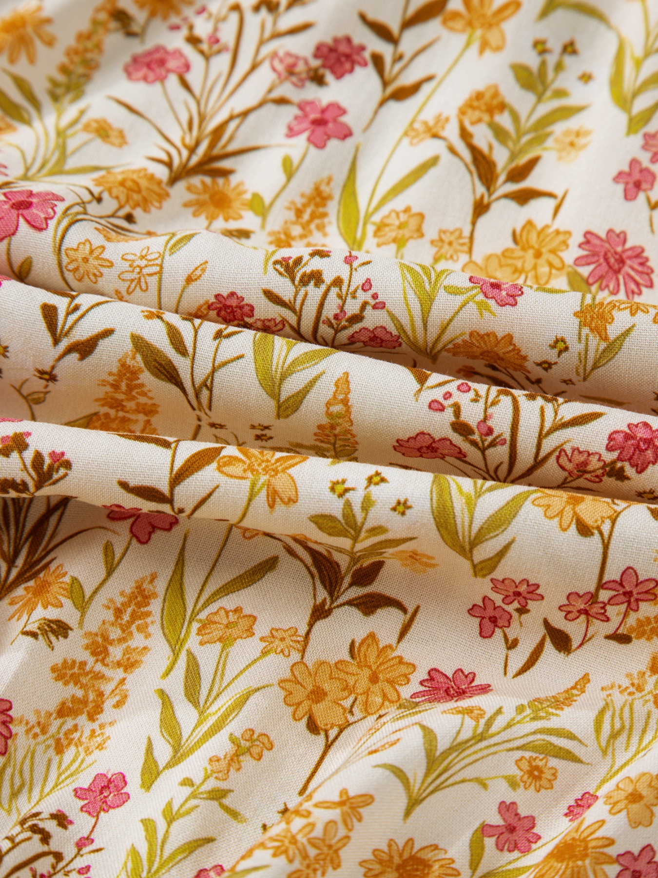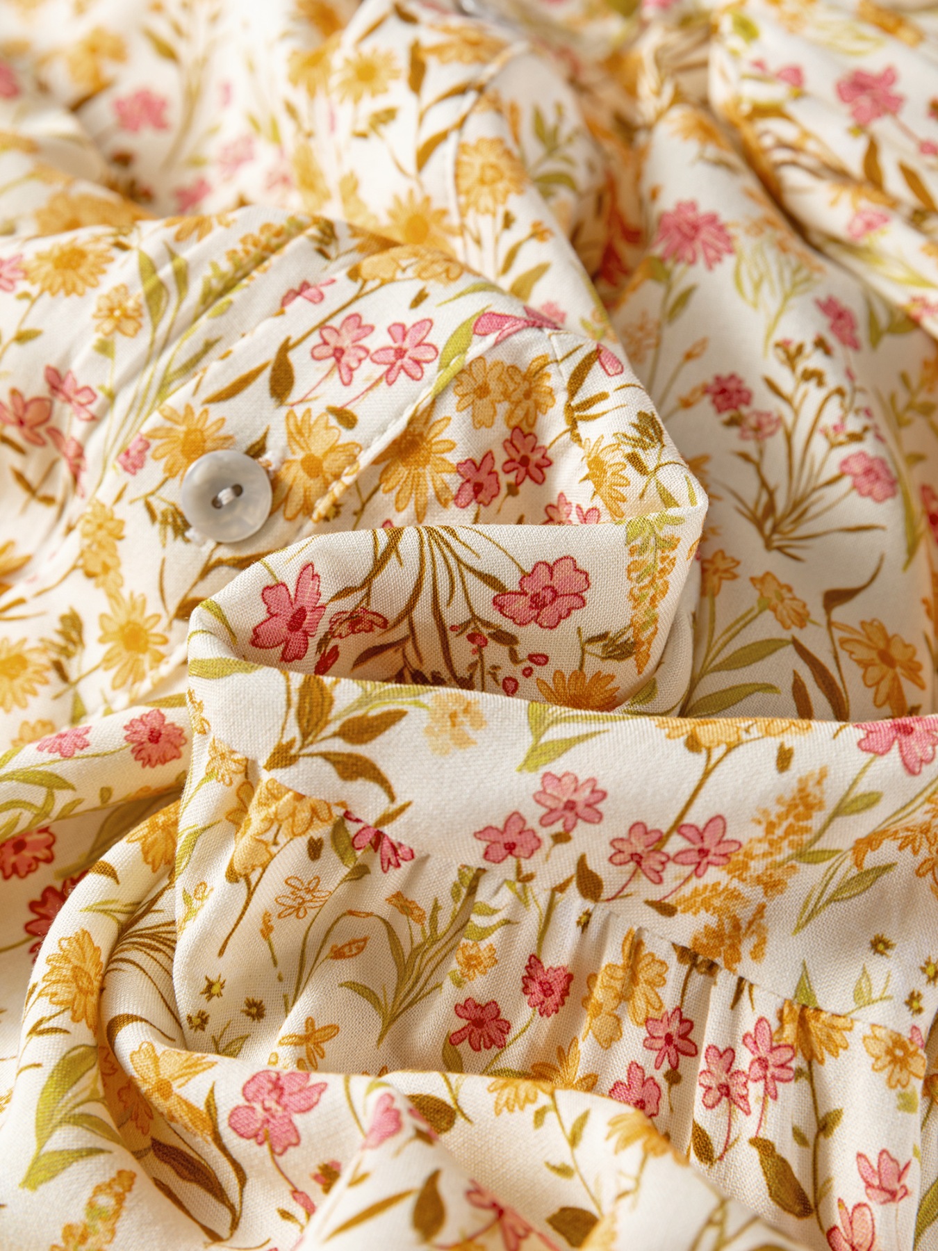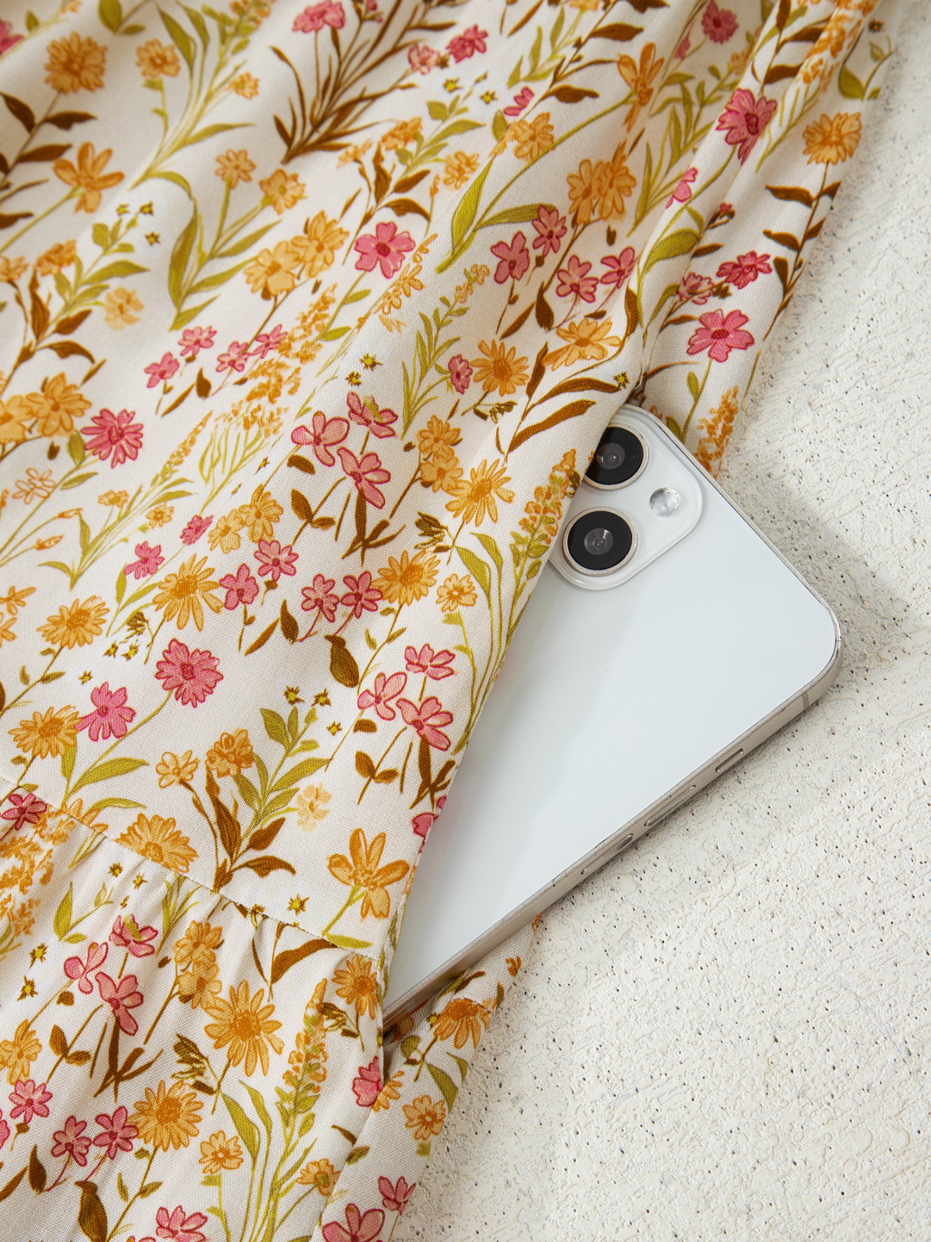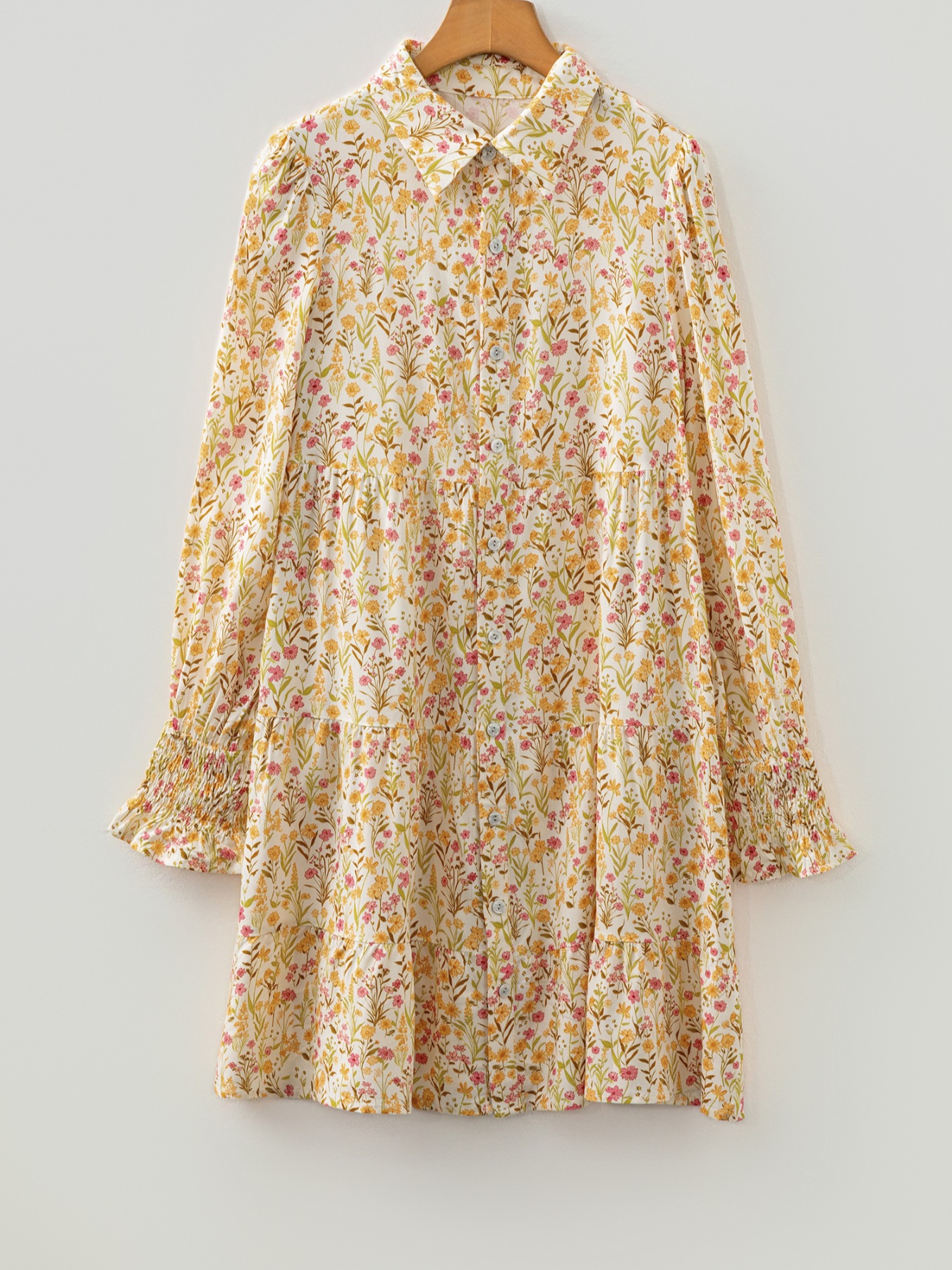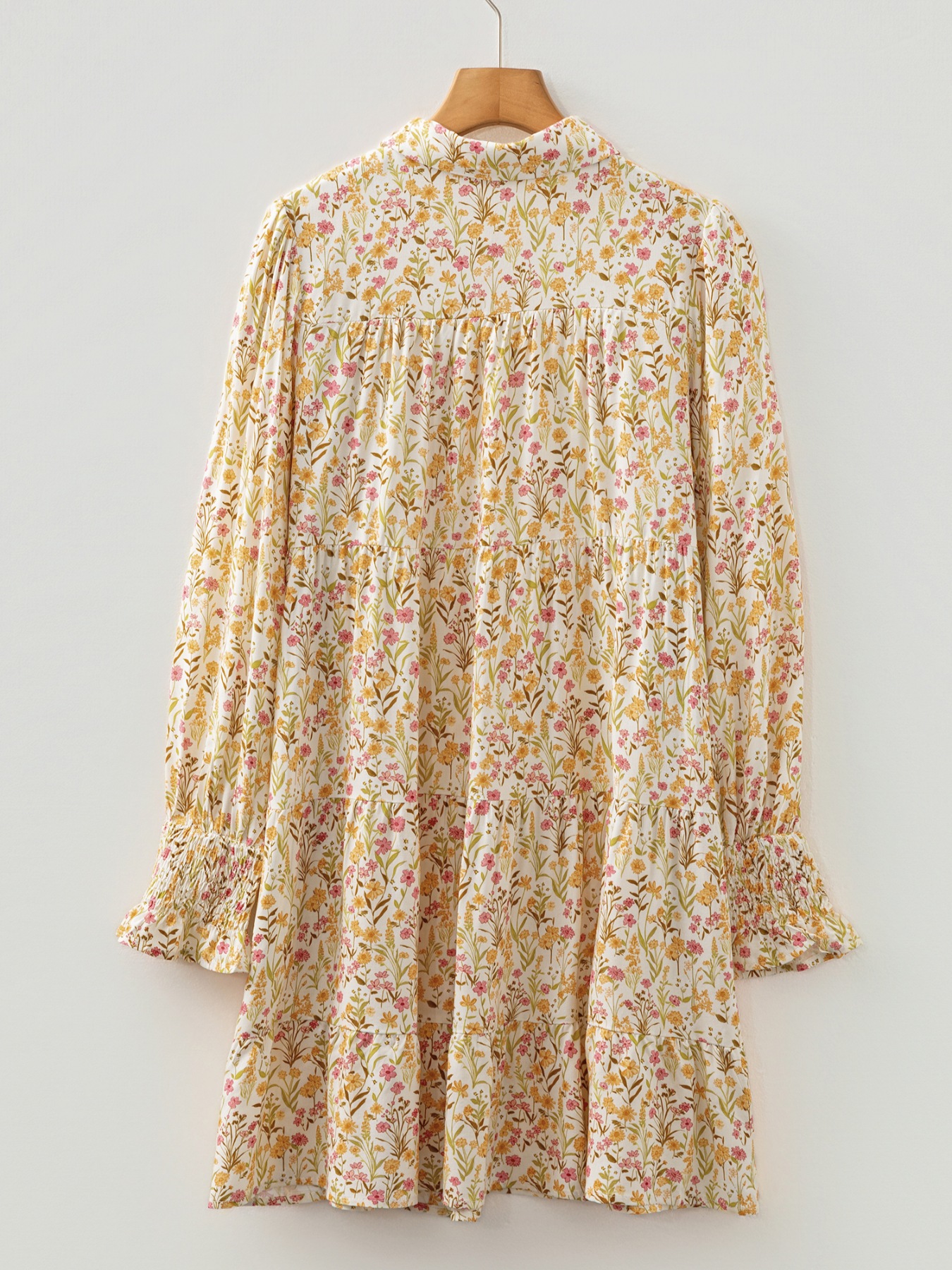 Floral Print Frilly Trim Smocked Cuff Long Sleeve Loose Shirt Dress