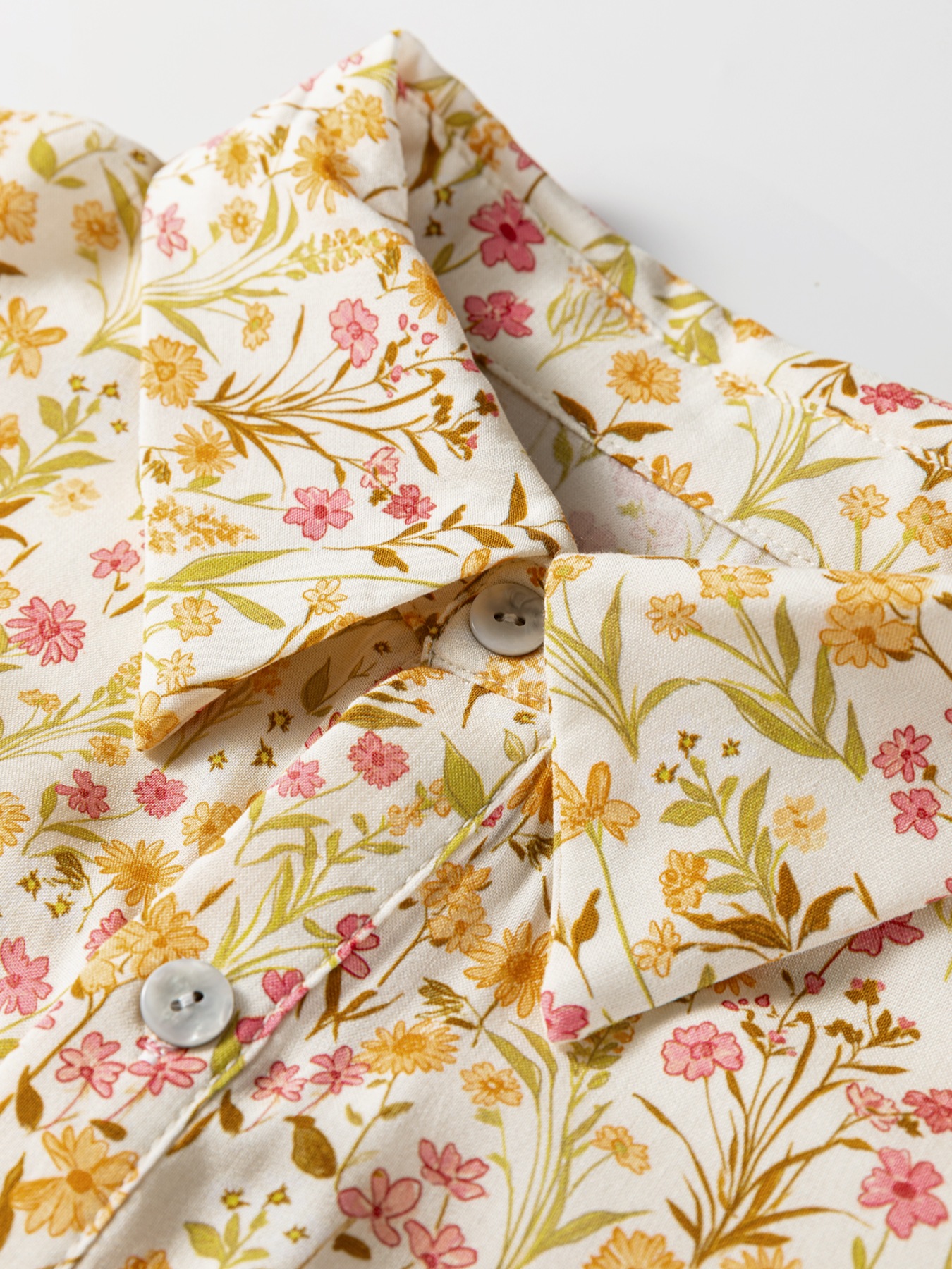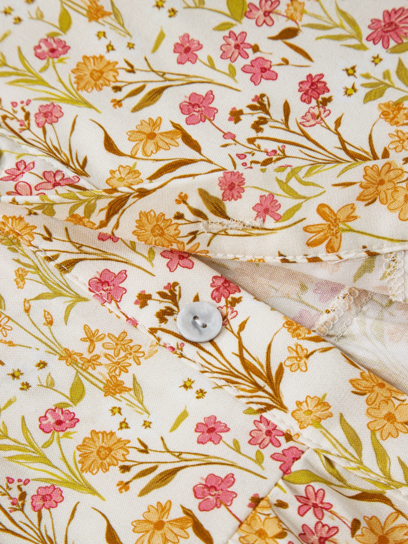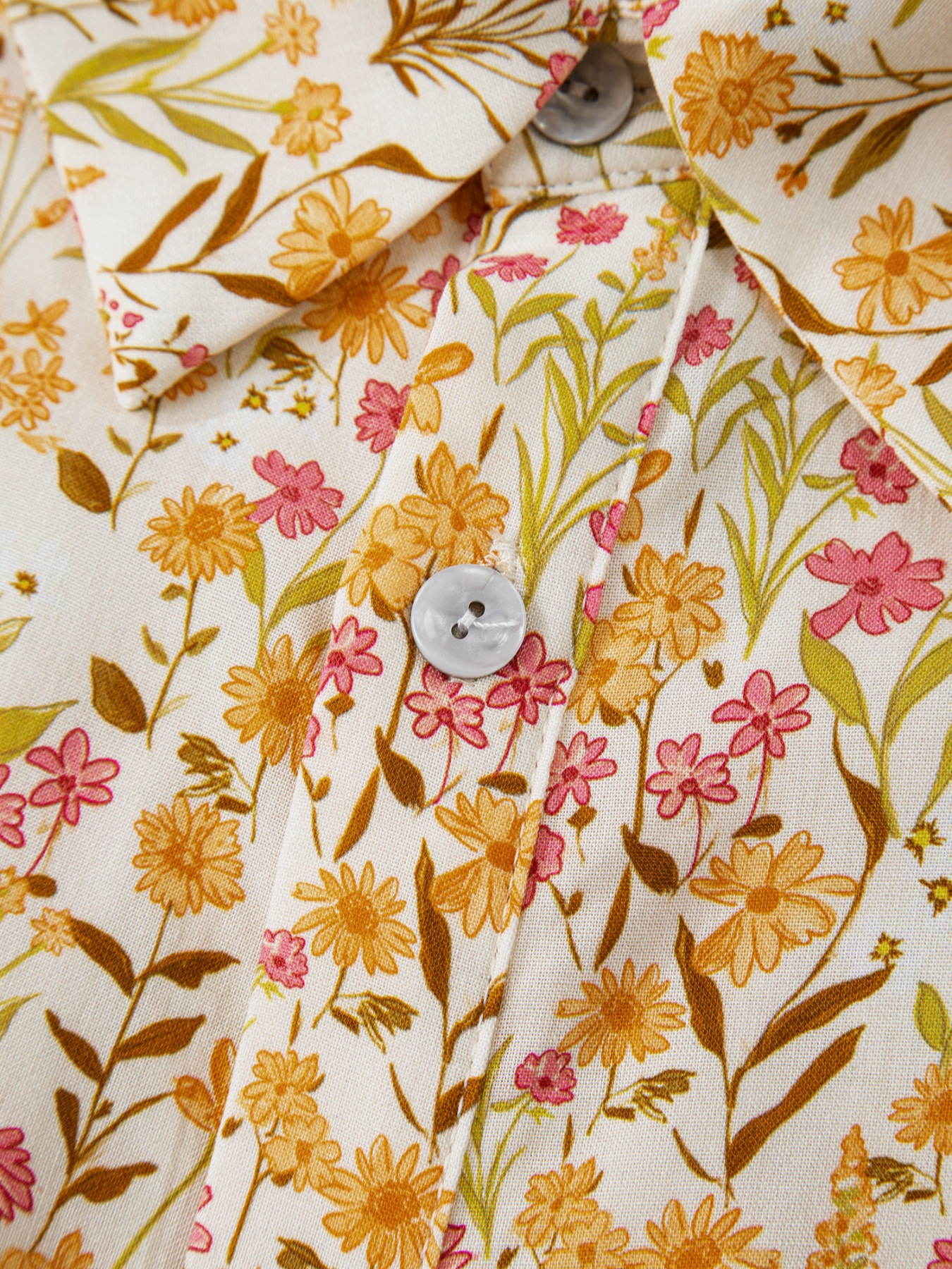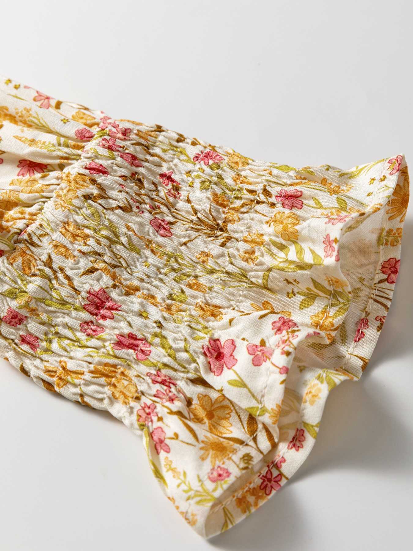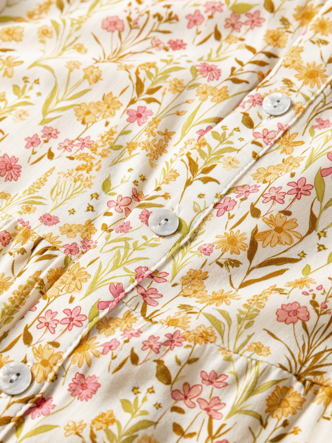 Floral Print Frilly Trim Smocked Cuff Long Sleeve Loose Shirt Dress