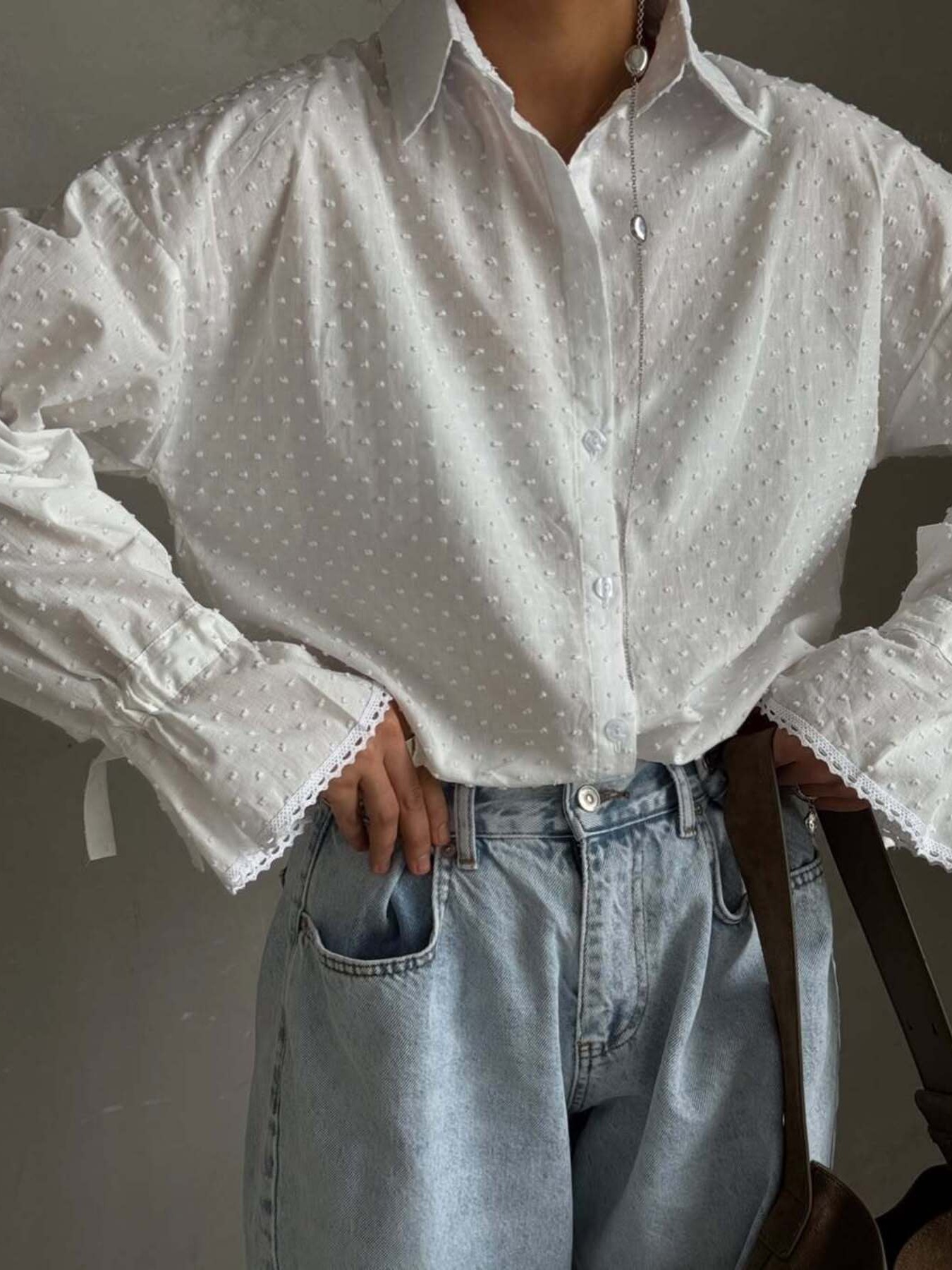 Swiss Dot Flounce Sleeve Shirt