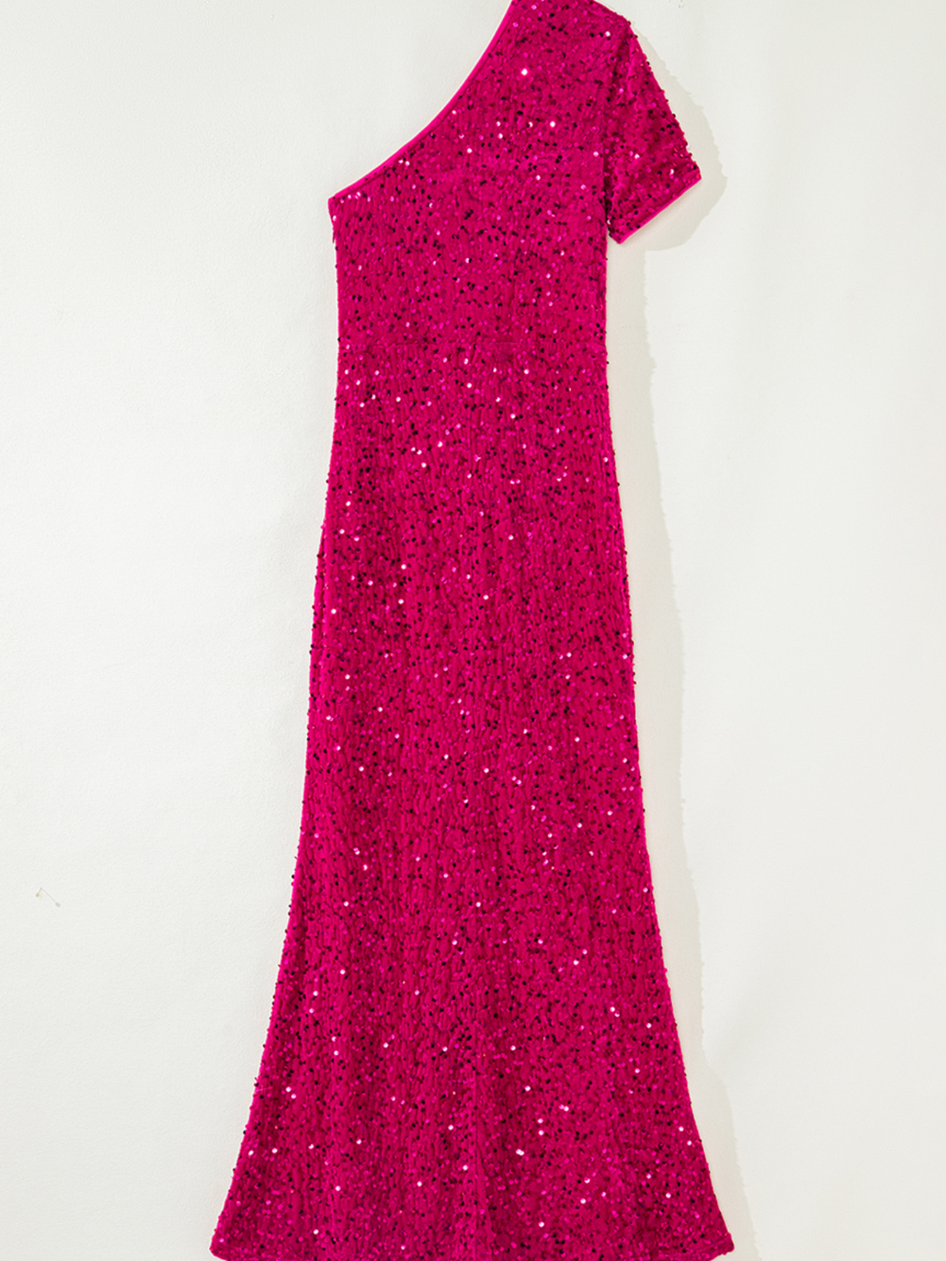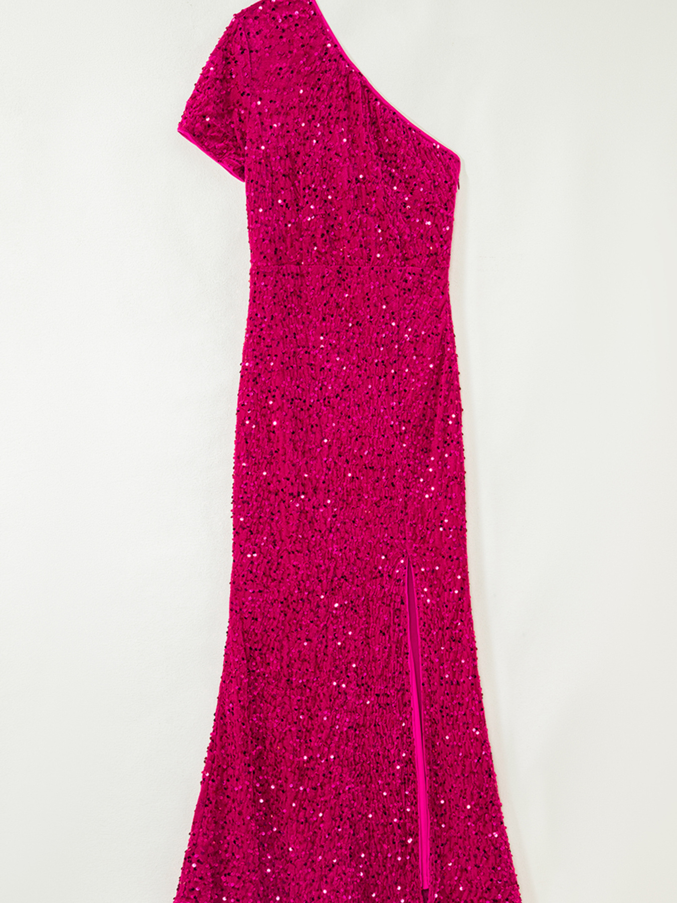 Sequin One-Shoulder Dress With High Slit
