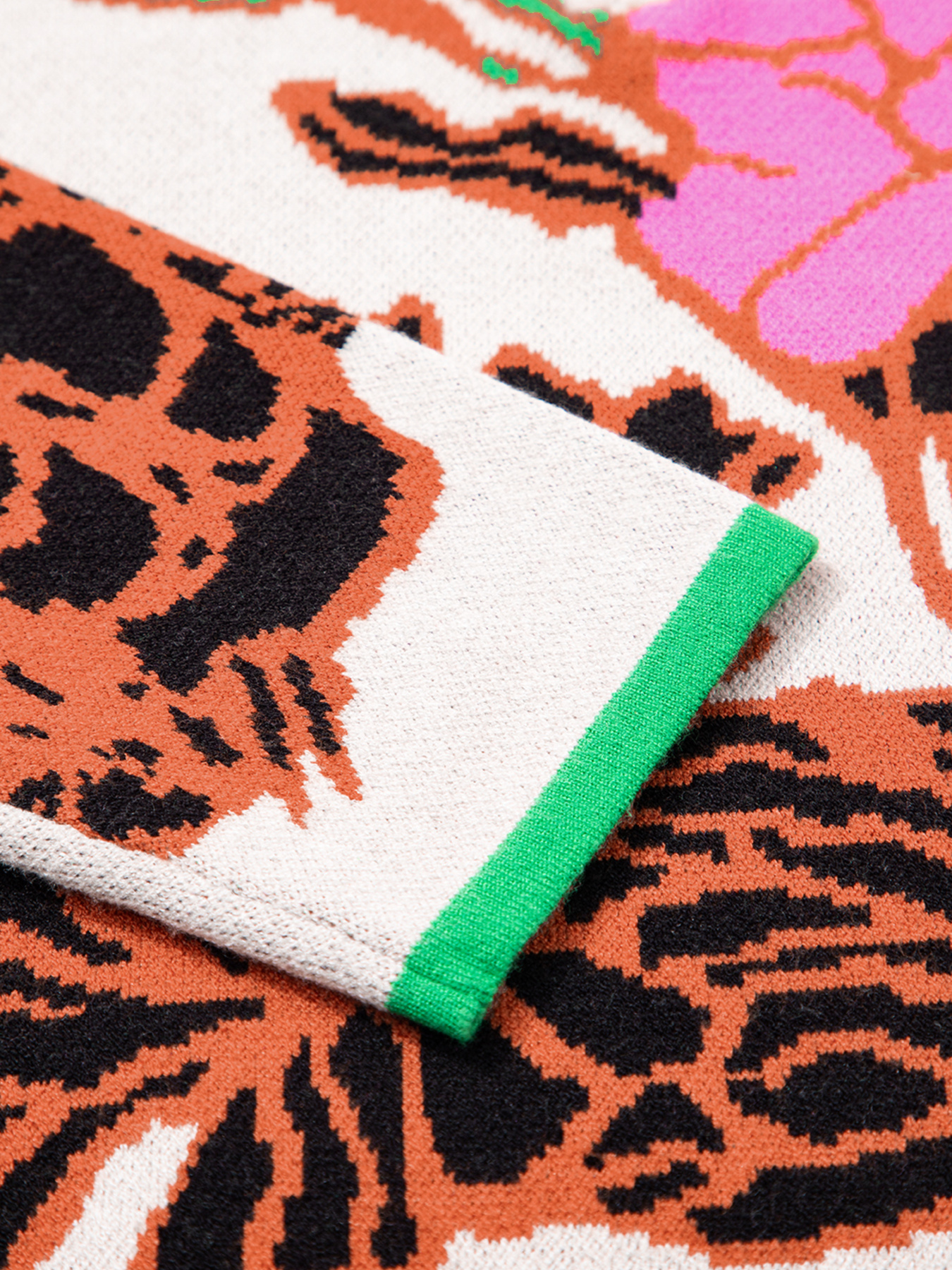 Floral Pattern Knit Quarter Zip Stand Neck Sweater